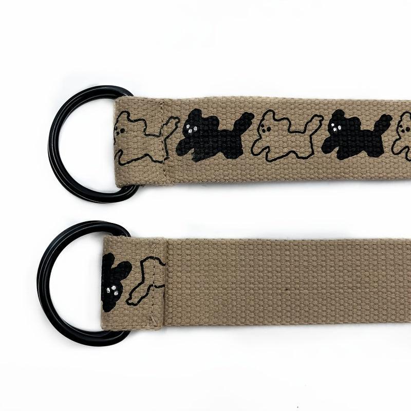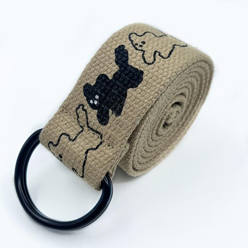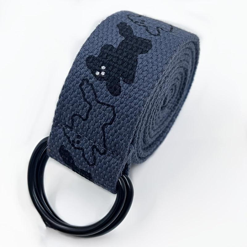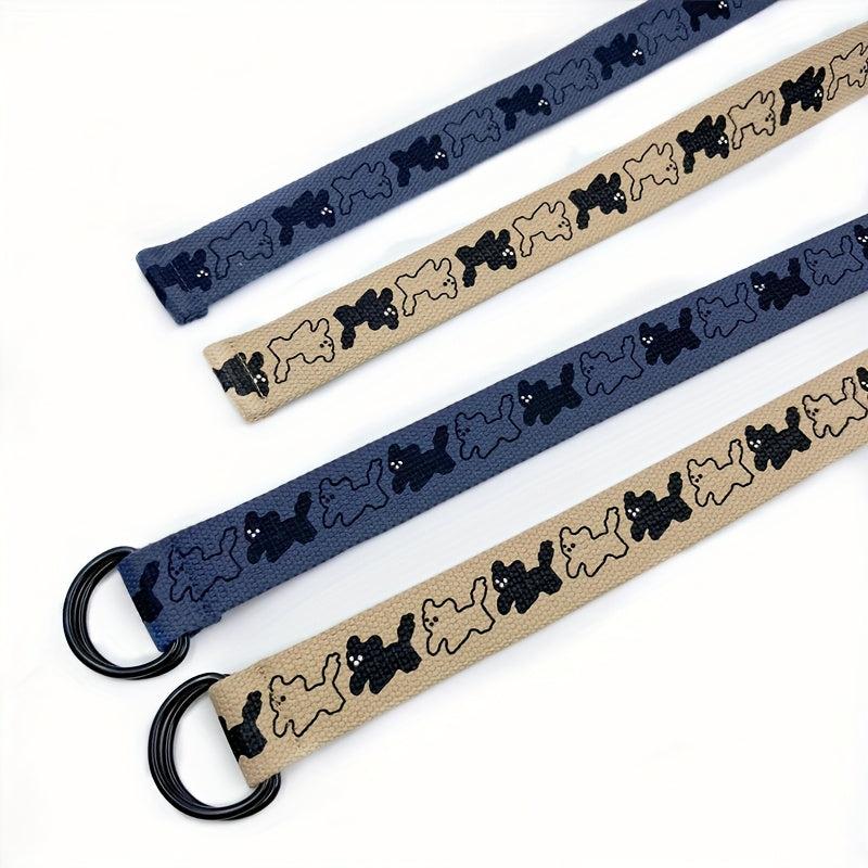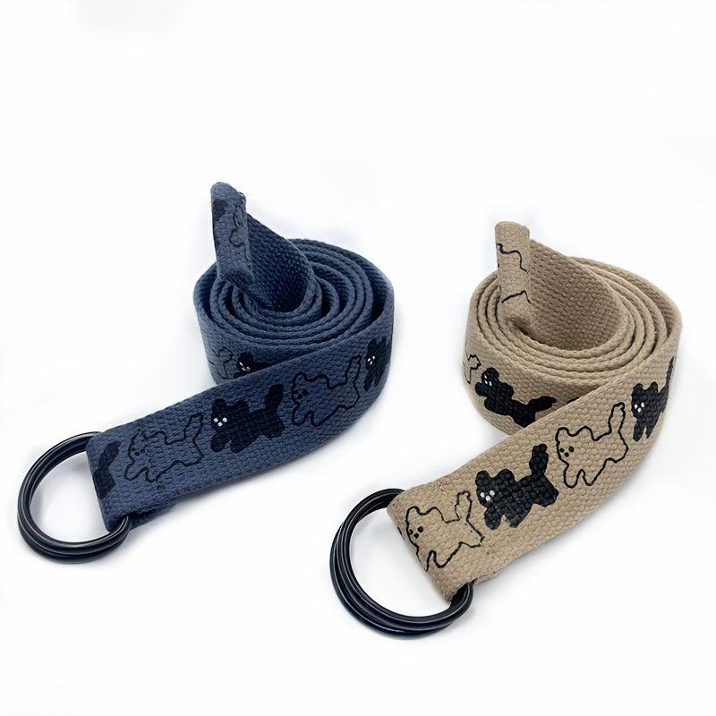 These 2pcs casual canvas belts with symmetrical double ring buckle feature a leisure fun printed style, making them perfect for students. The average size fits most.