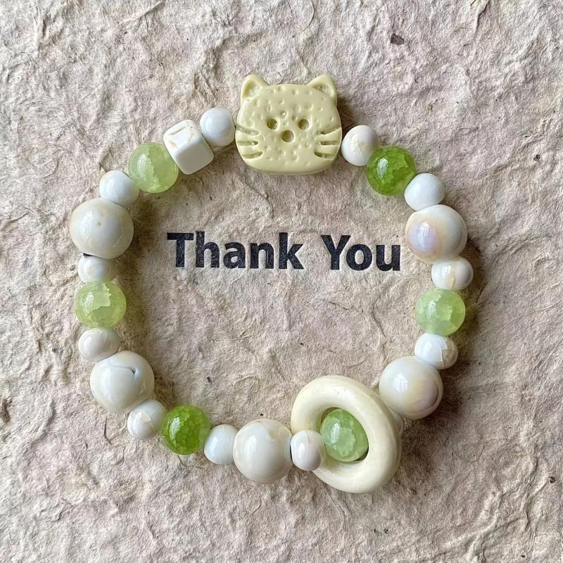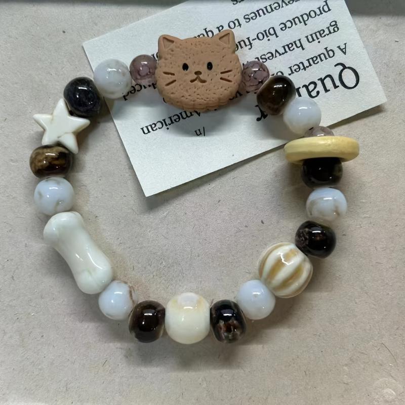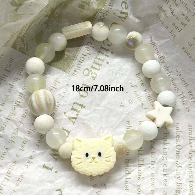 This women's beaded bracelet features an adorable cat design crafted with synthetic stone. It requires no power and is suitable for all-season wear. Perfect as a holiday gift or party favor for Christmas celebrations.