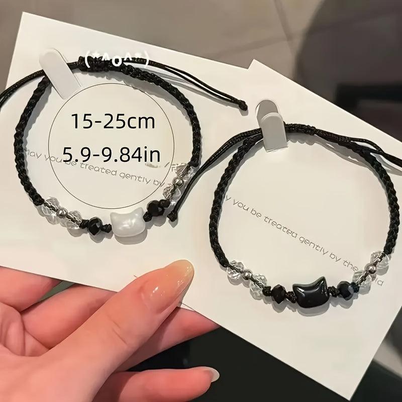 This 2pcs set features a cat pendant bracelet and an adjustable rope chain bracelet, perfect for daily wear, dating, and anniversaries.
