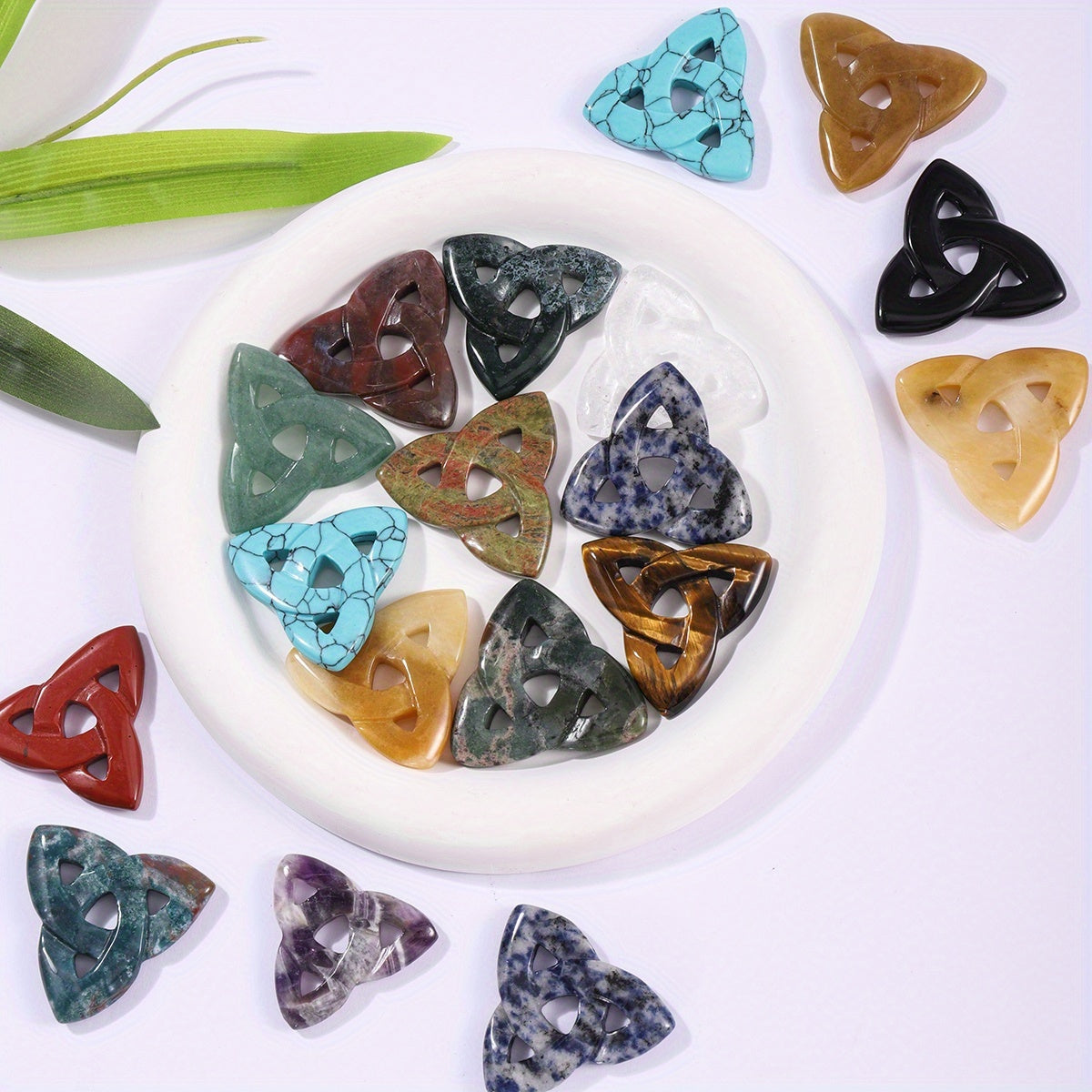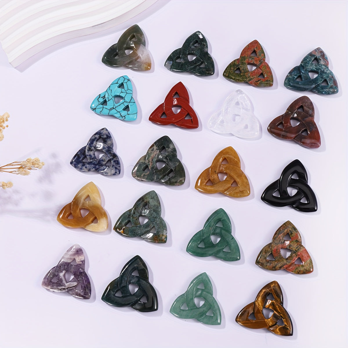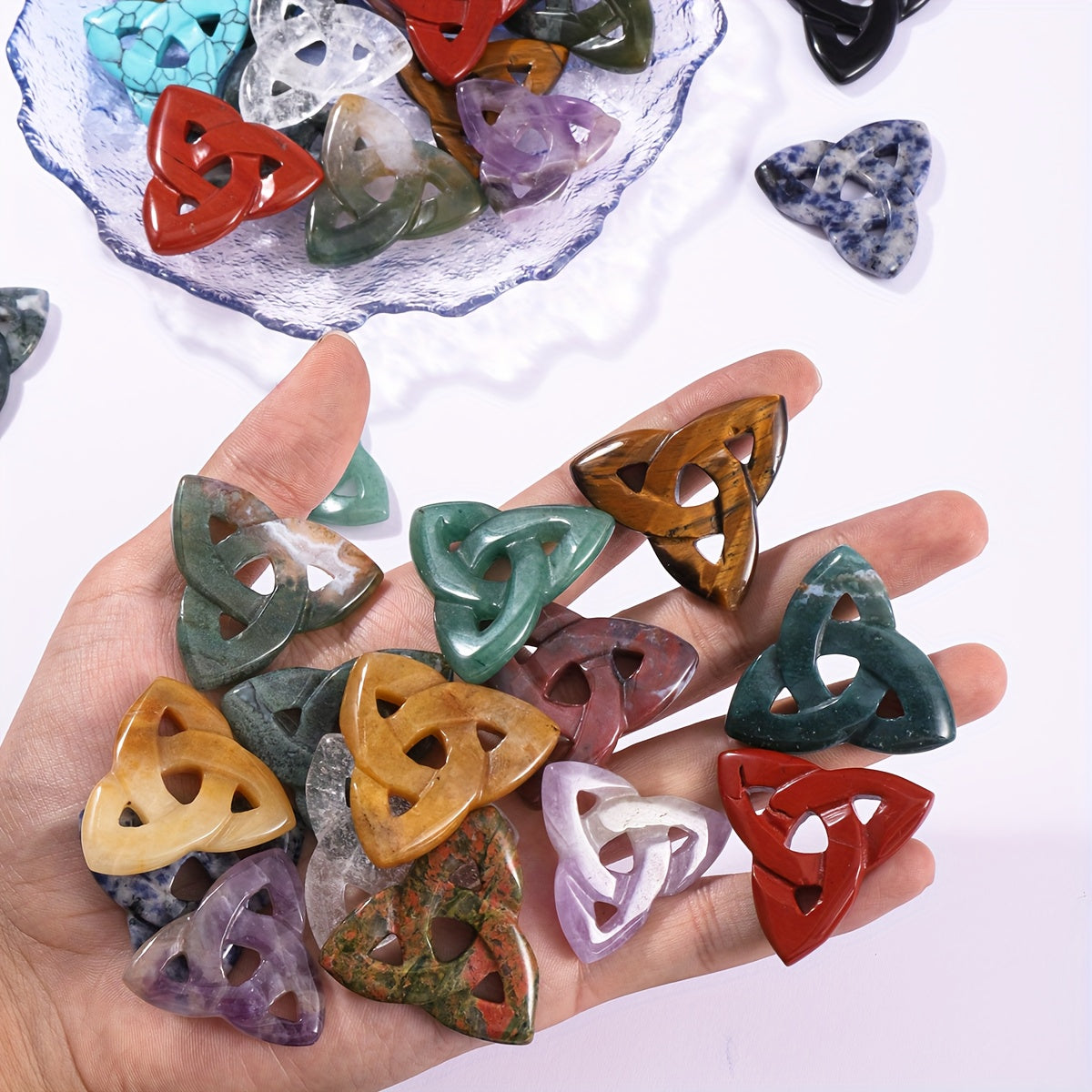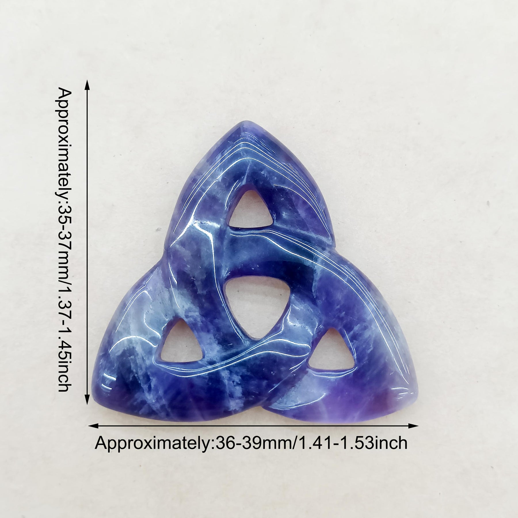 This natural stone Celtic crystal piece is hand carved into a triangular hollow shape, perfect for room decoration. It can also be used as a DIY pendant or necklace pendant.