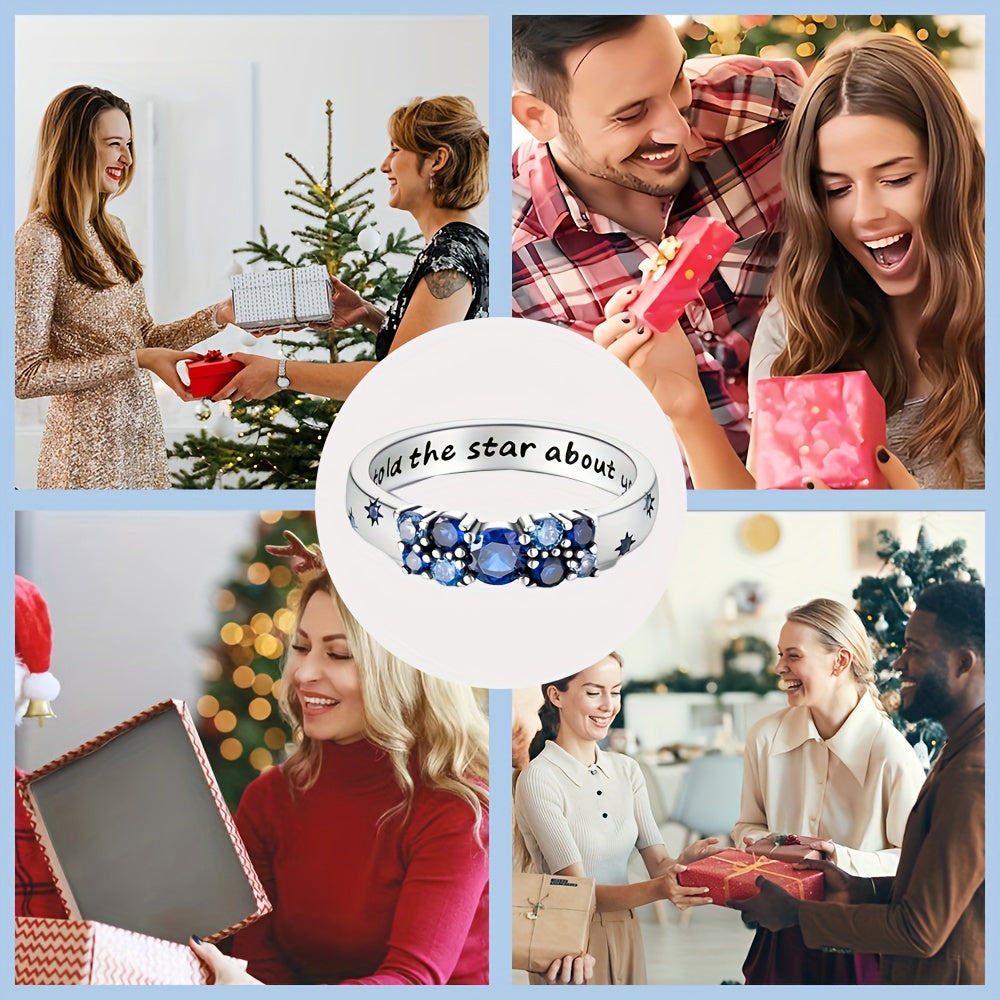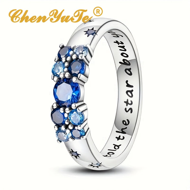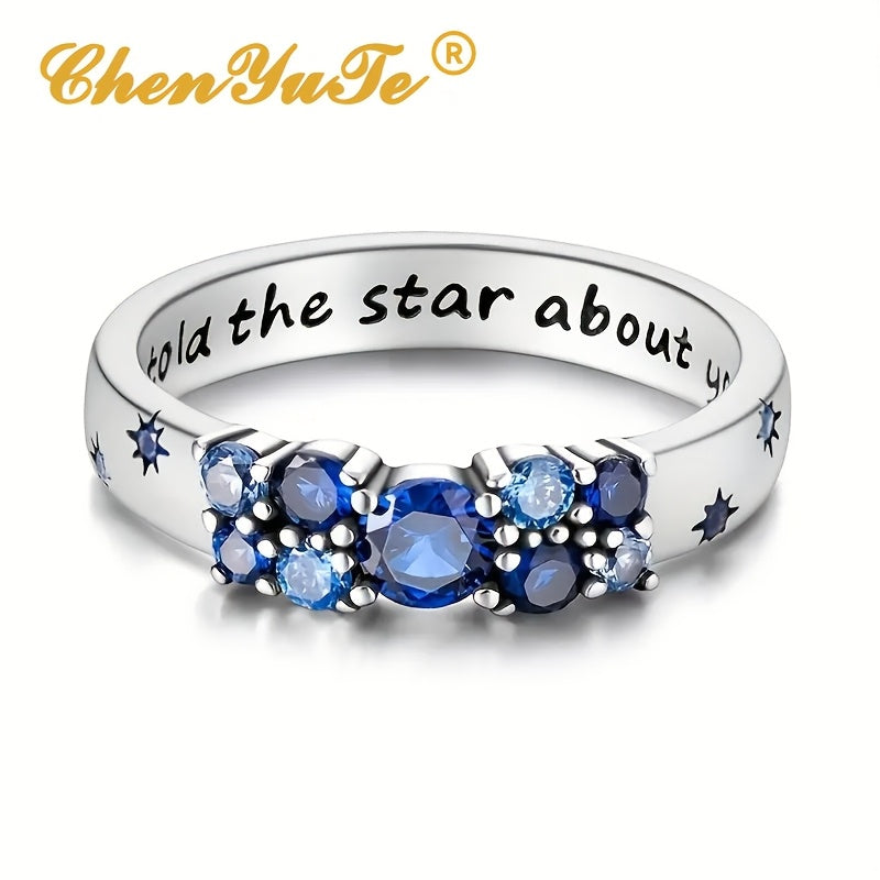 Elegant ChenYuTe ring crafted from 925 sterling silver featuring a cubic zirconia star motif and engraved with 'Bold as a Star'. Hypoallergenic and ideal for daily wear, this ring makes a perfect gift for women.