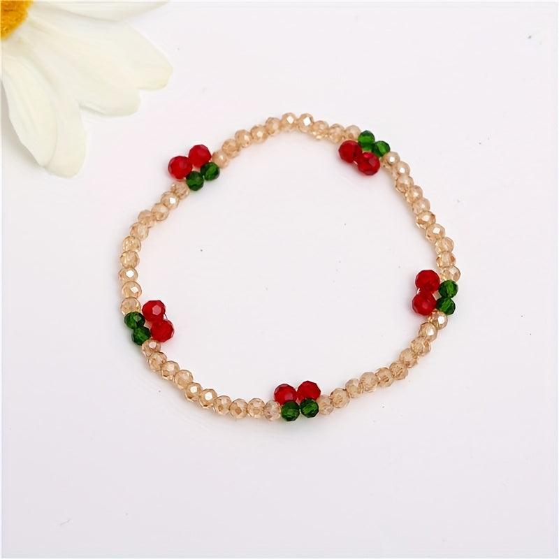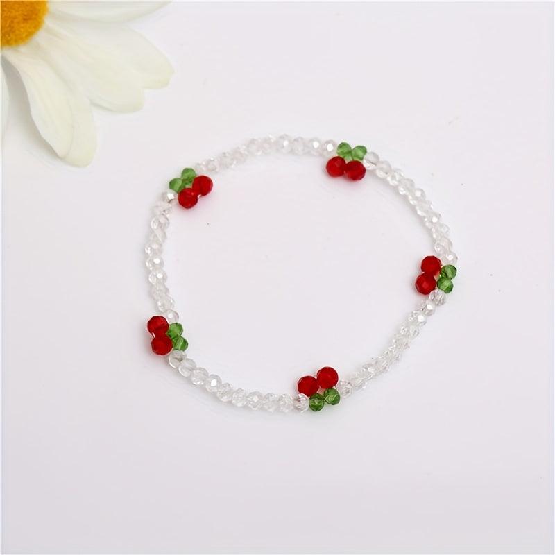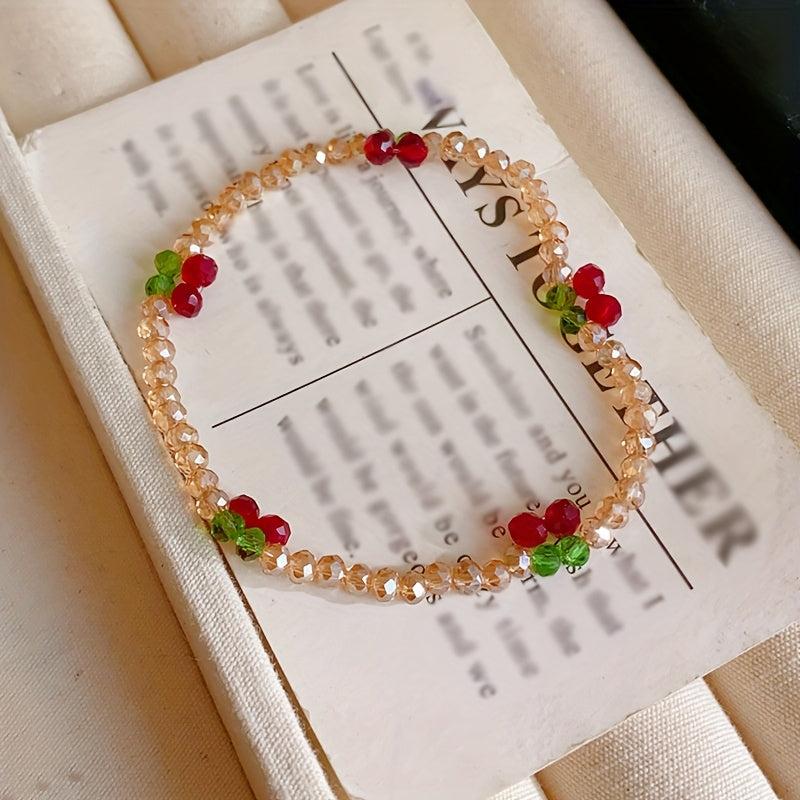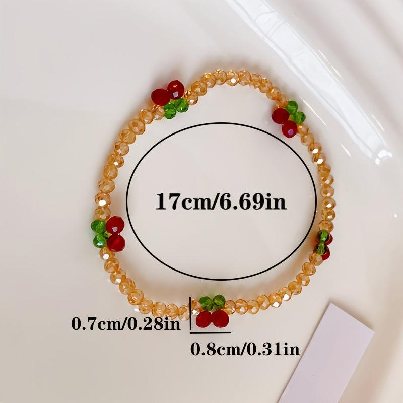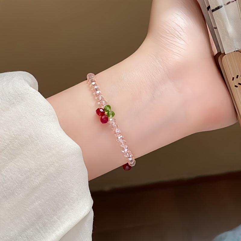 Add a touch of elegance to your daily wear with this cherry bead stretch bracelet featuring sparkling artificial crystals. Perfect as a Valentine's accessory or gift for women.