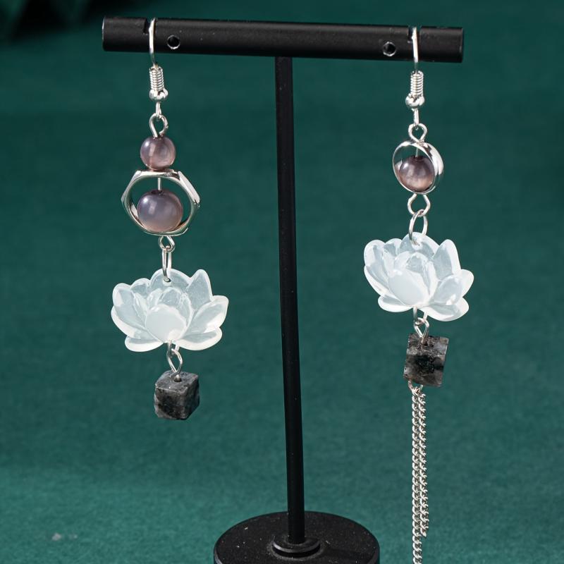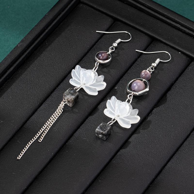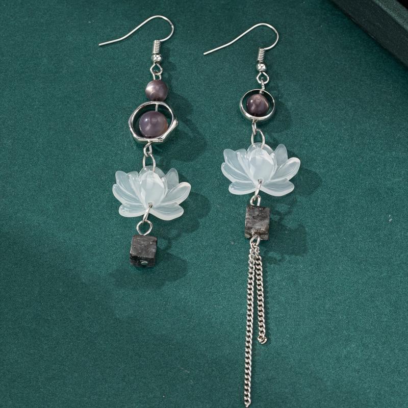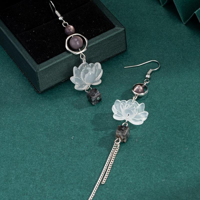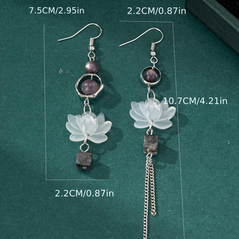Embrace elegance with these asymmetrical tassel earrings, featuring a Chinese-inspired lotus design. Crafted from 925 silvery alloy, these earrings are perfect for everyday wear or a night out.