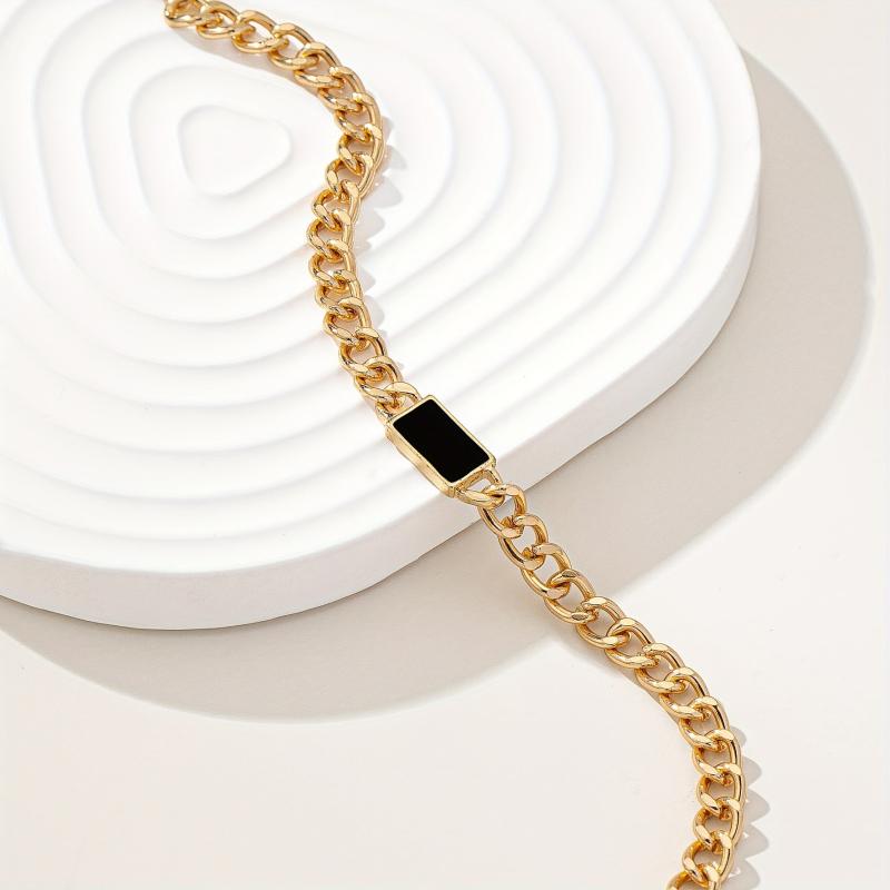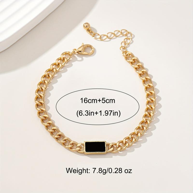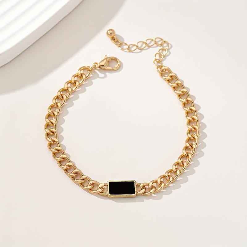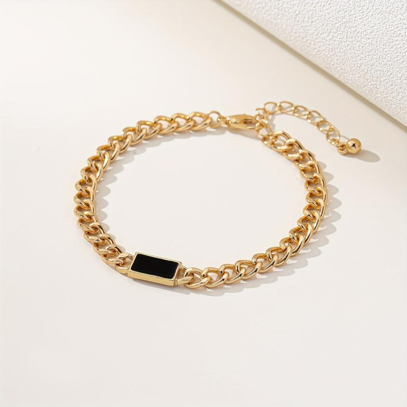 This versatile bracelet features a chunky chain link design with a rectangular gemstone in a golden tone metal setting. It is perfect for daily wear and makes a sophisticated gift year-round.