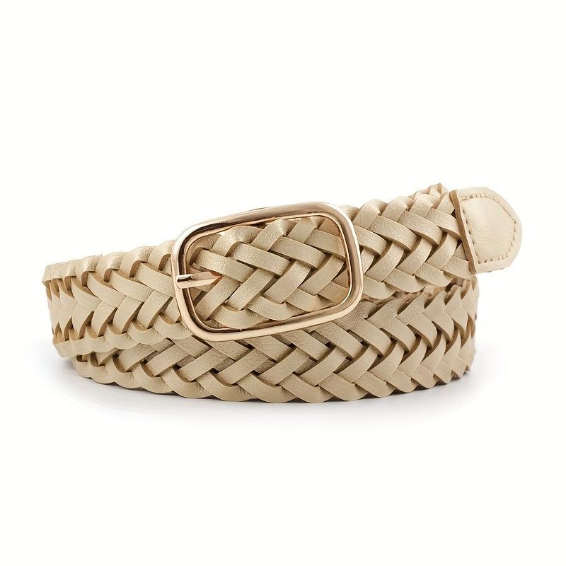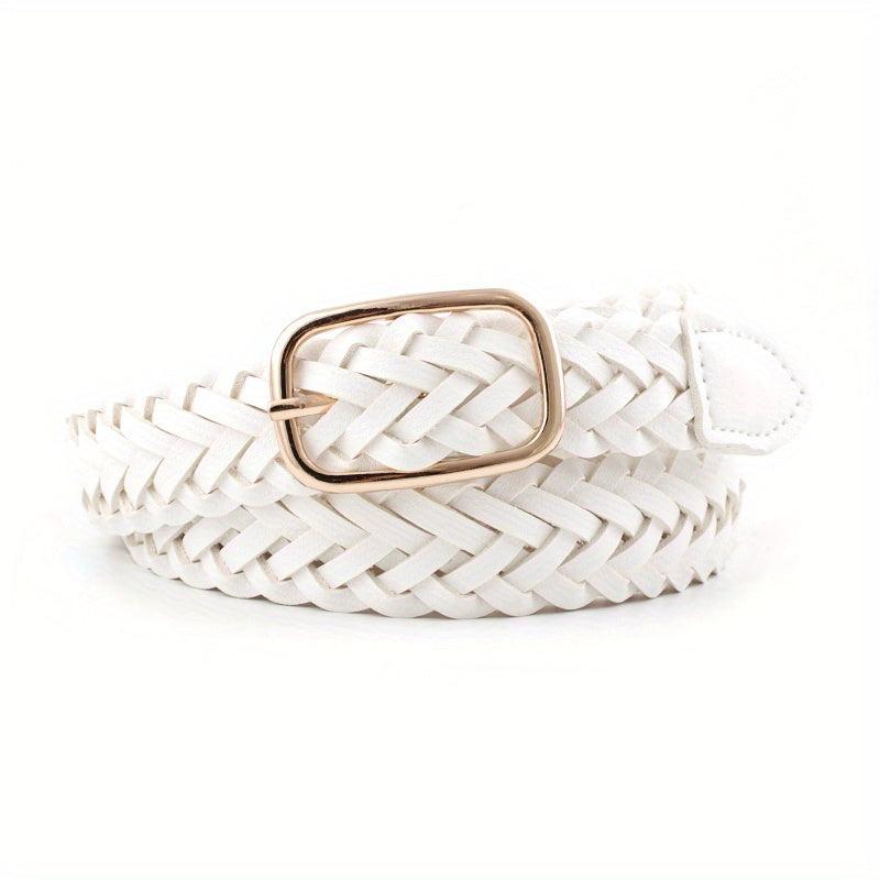 This classic solid braid belt features a vintage pin buckle design, perfect for jeans, pants, and dresses. It adds a stylish touch to any outfit.