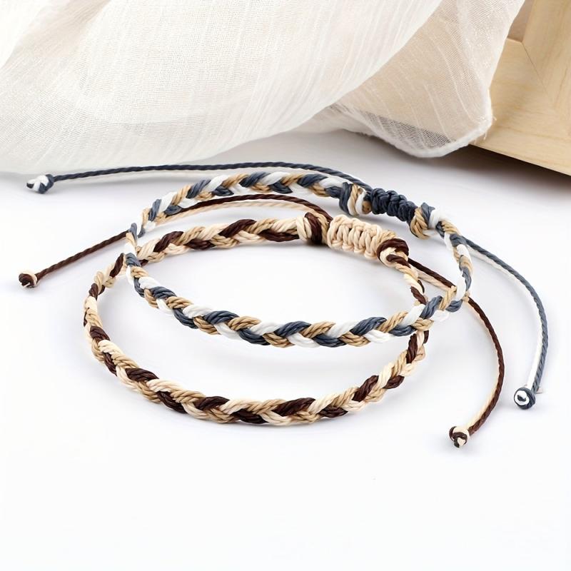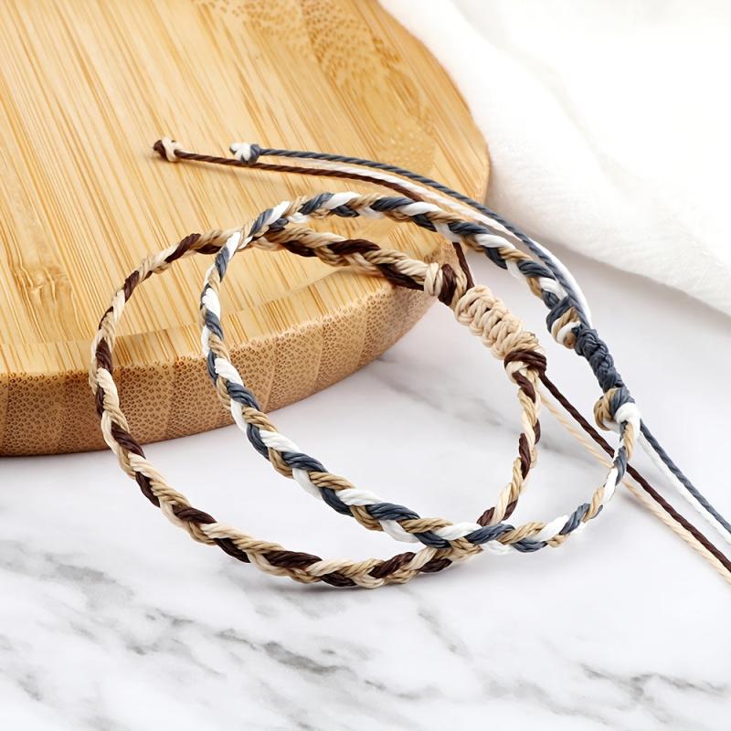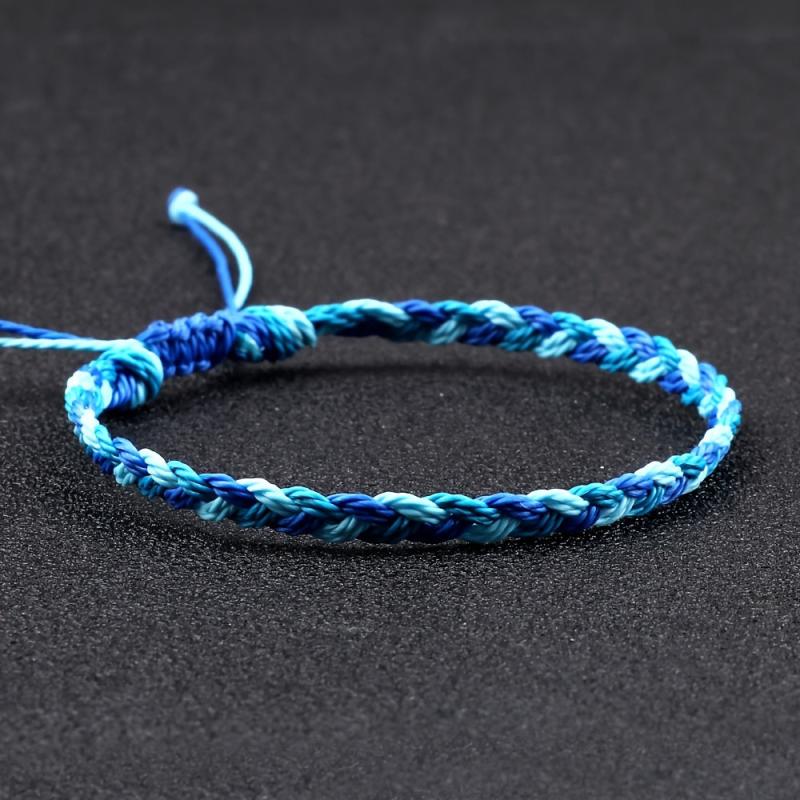 This vibrant bracelet features three strands of braided wax thread weaving, making it the perfect accessory for daily wear, travel, and vacation. The adjustable rope length ensures a comfortable fit for all.