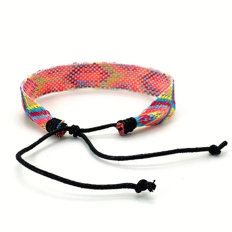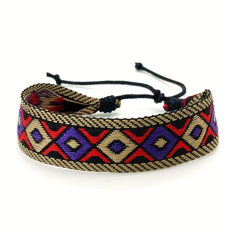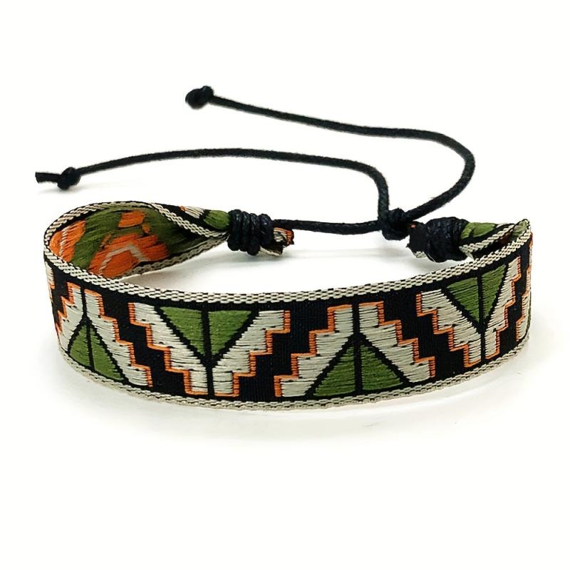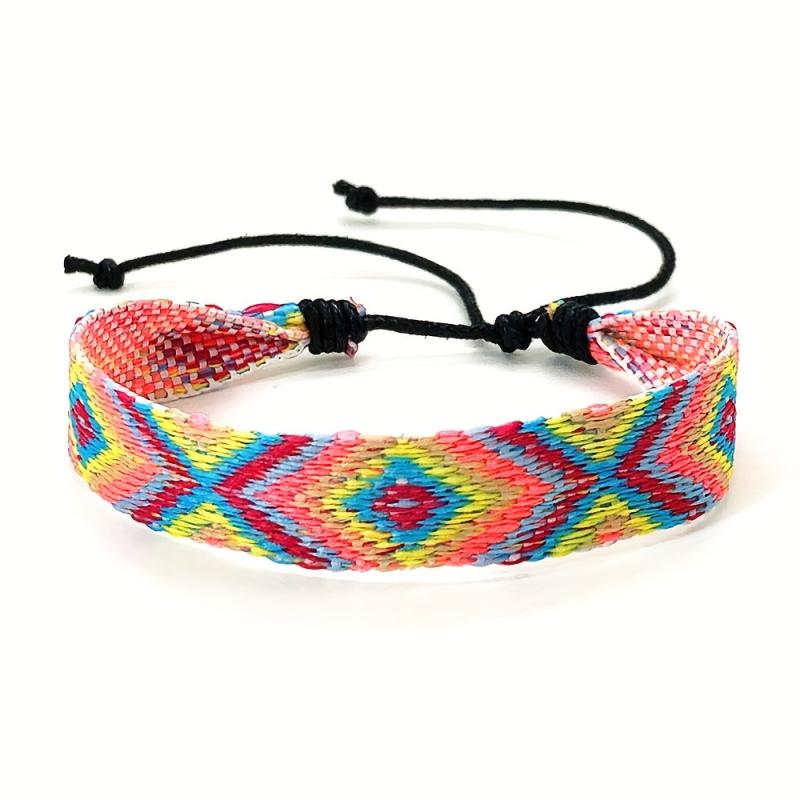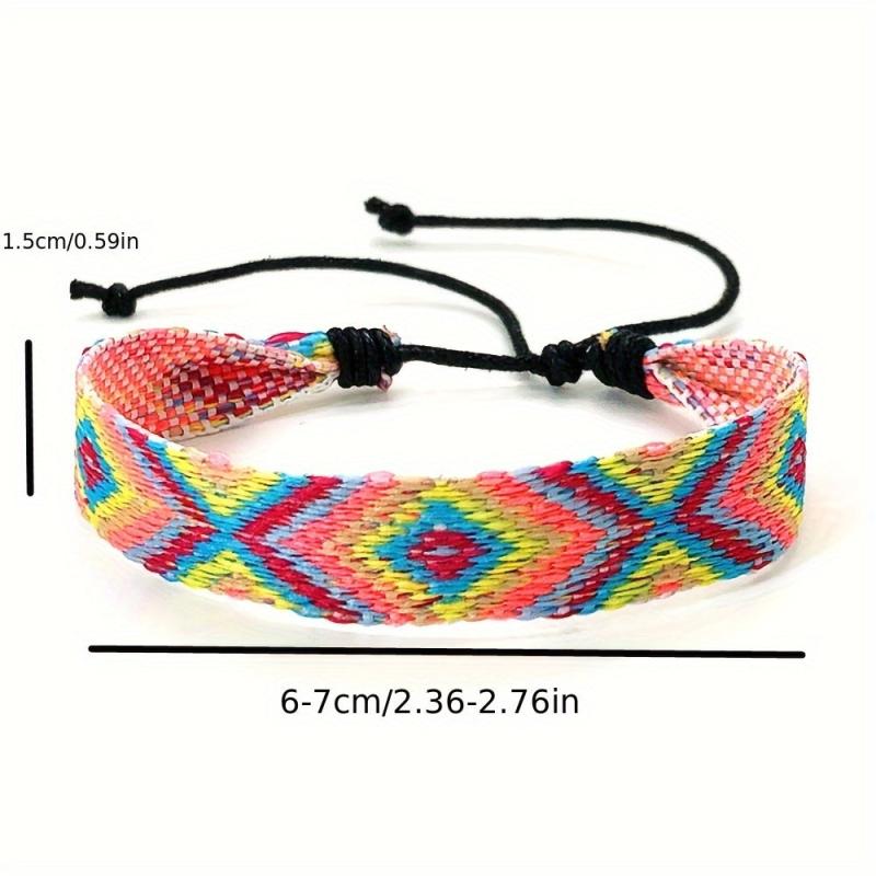 Add a pop of color to your outfit with this vibrant braided bracelet. The bohemian style and vibrant geometric print patterns make it a perfect accessory for festivals, casual attire, and gifting.