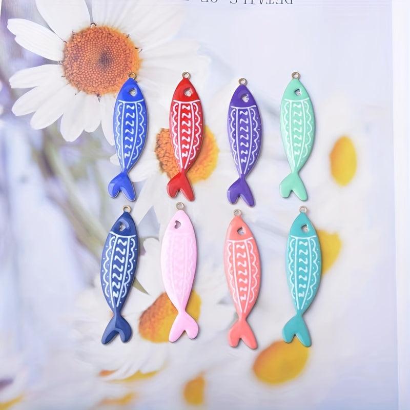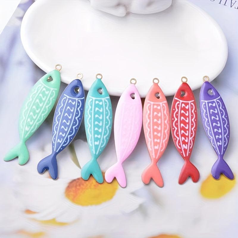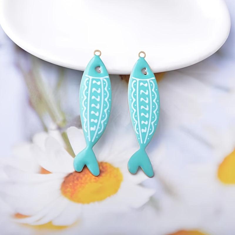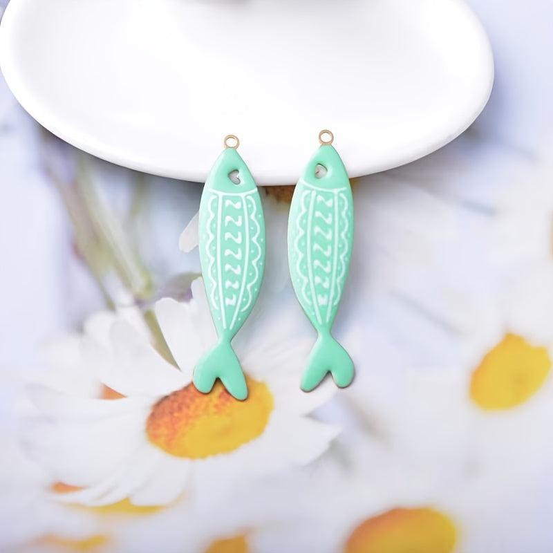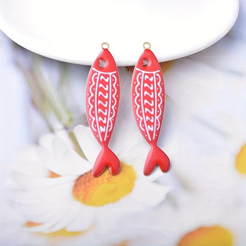 These vibrant copper fish charms are perfect for creating your own stylish necklaces and earrings. The enamel finish adds a beautiful pop of color to your designs.