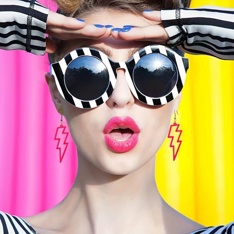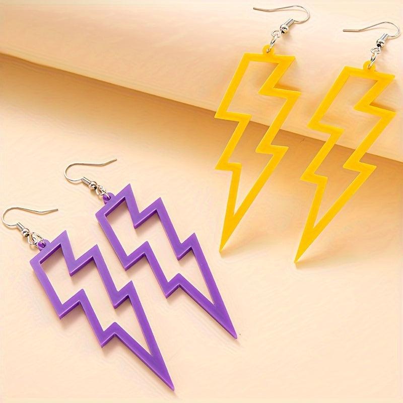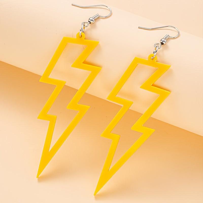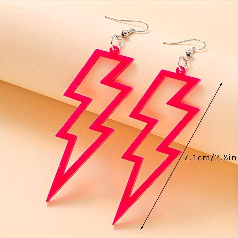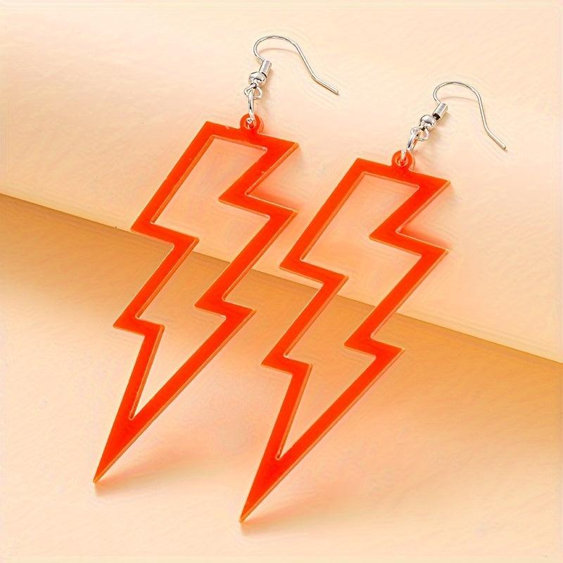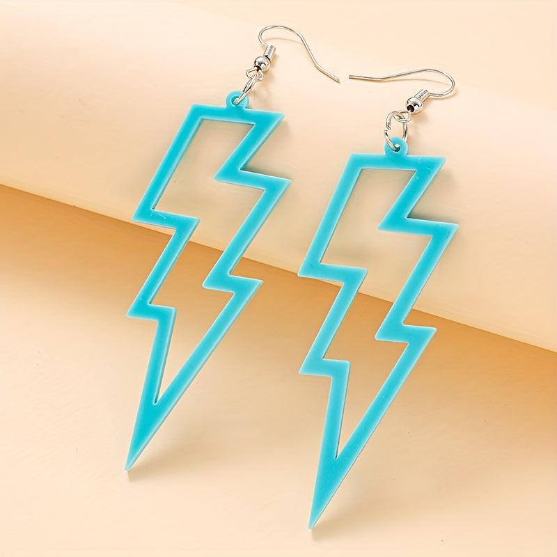These earrings feature a creative punk style design with colorful hollow lightening shapes. Made of lightweight acrylic material, these earrings are perfect for adding a pop of color to any outfit.