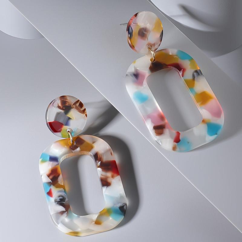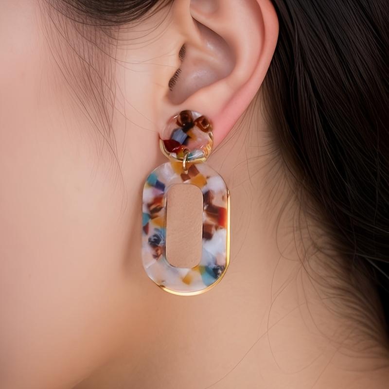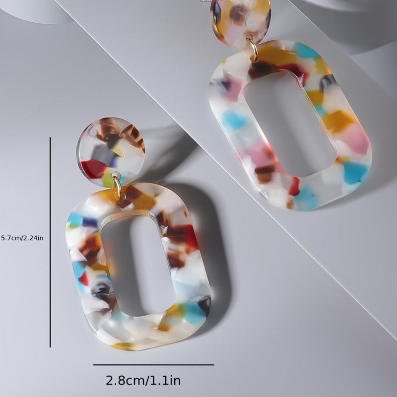 Add a touch of vintage style to your outfits with these colorful oval acrylic earrings. Perfect for parties, birthdays, dates, and daily wear, these earrings are a great addition to your jewelry collection.