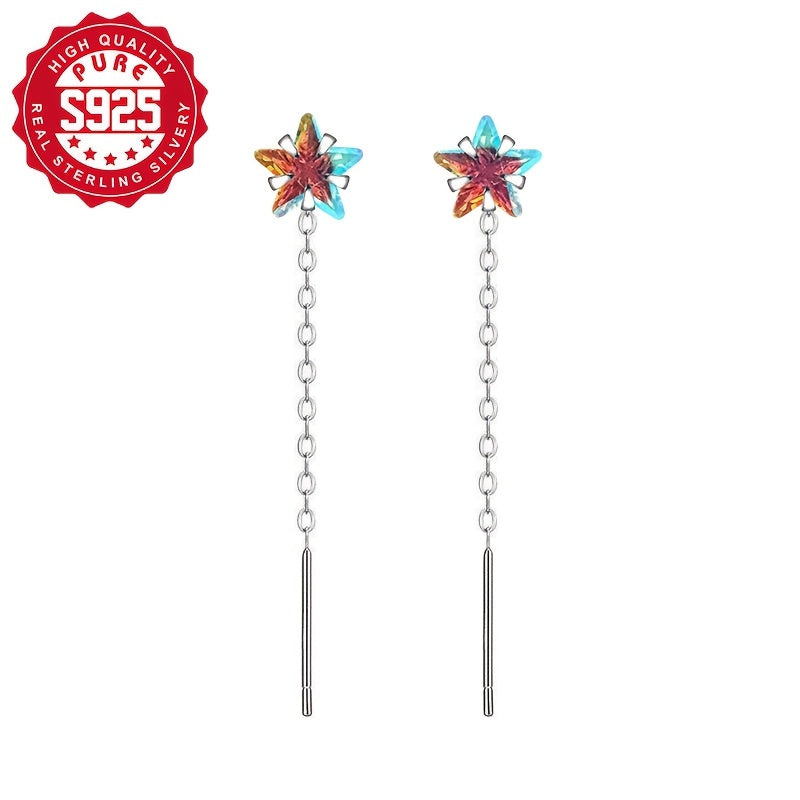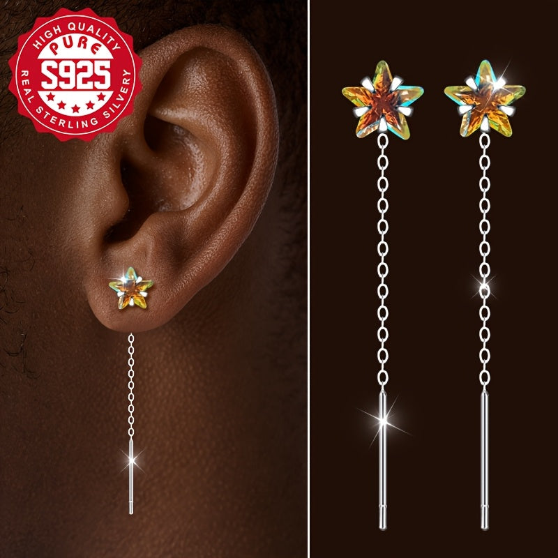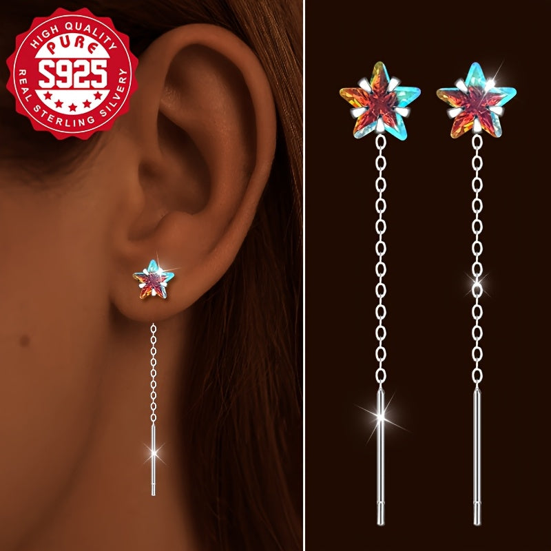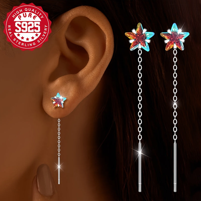 These vibrant tassel earrings feature synthetic zirconia accents and are made from hypoallergenic S925 silver. Lightweight at just 0.86g, they are perfect for everyday wear.