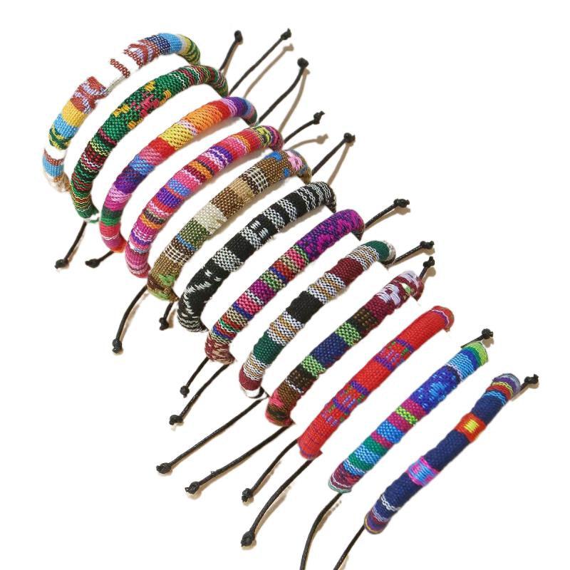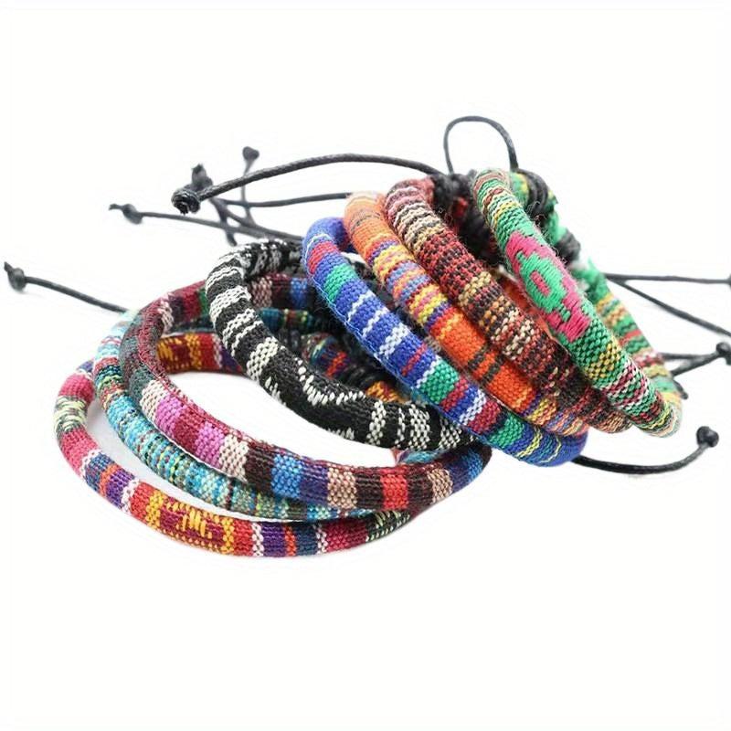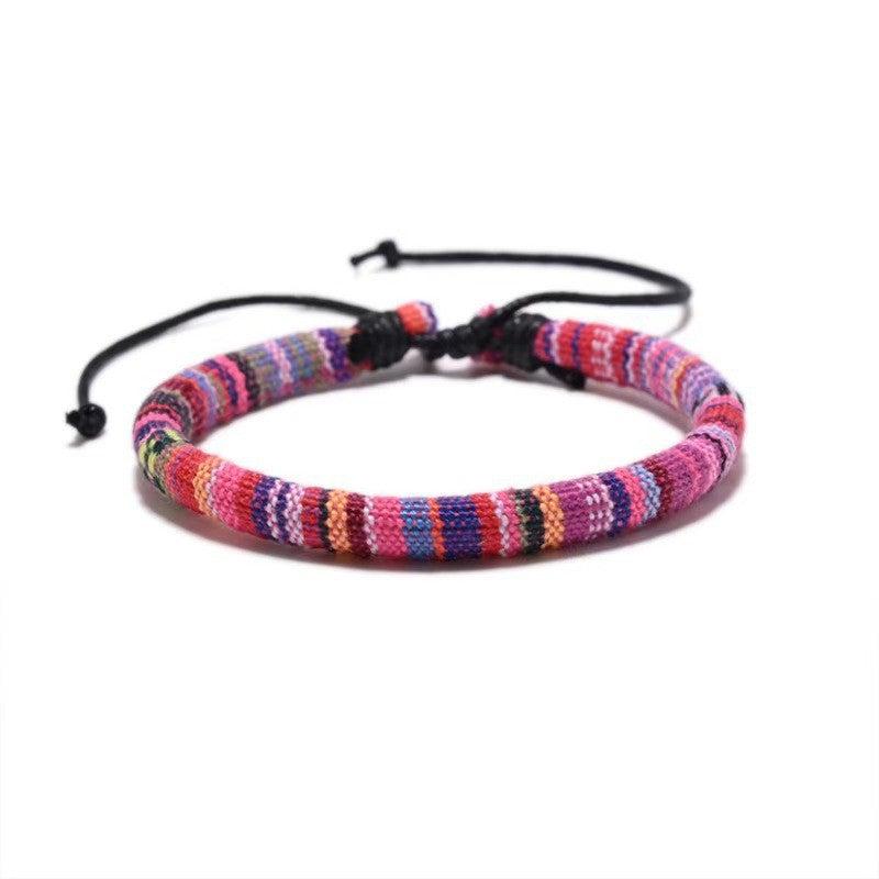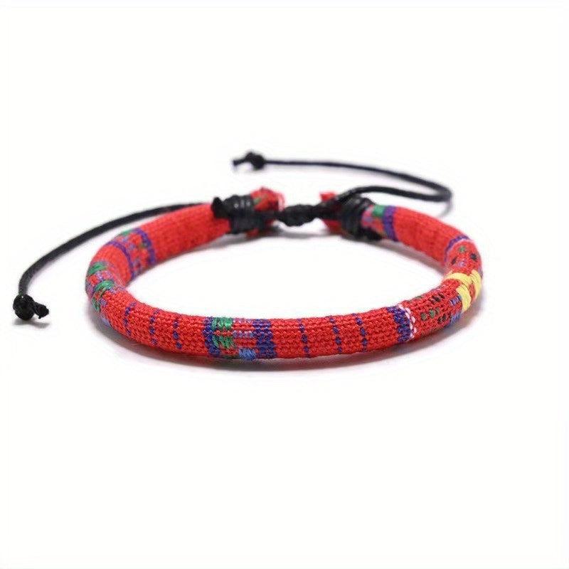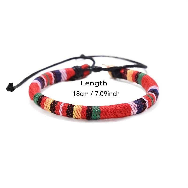 Handwoven ethnic-inspired bracelet featuring vibrant colors and irregular flowers. Perfect for everyday casual wear.