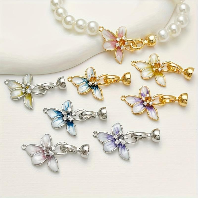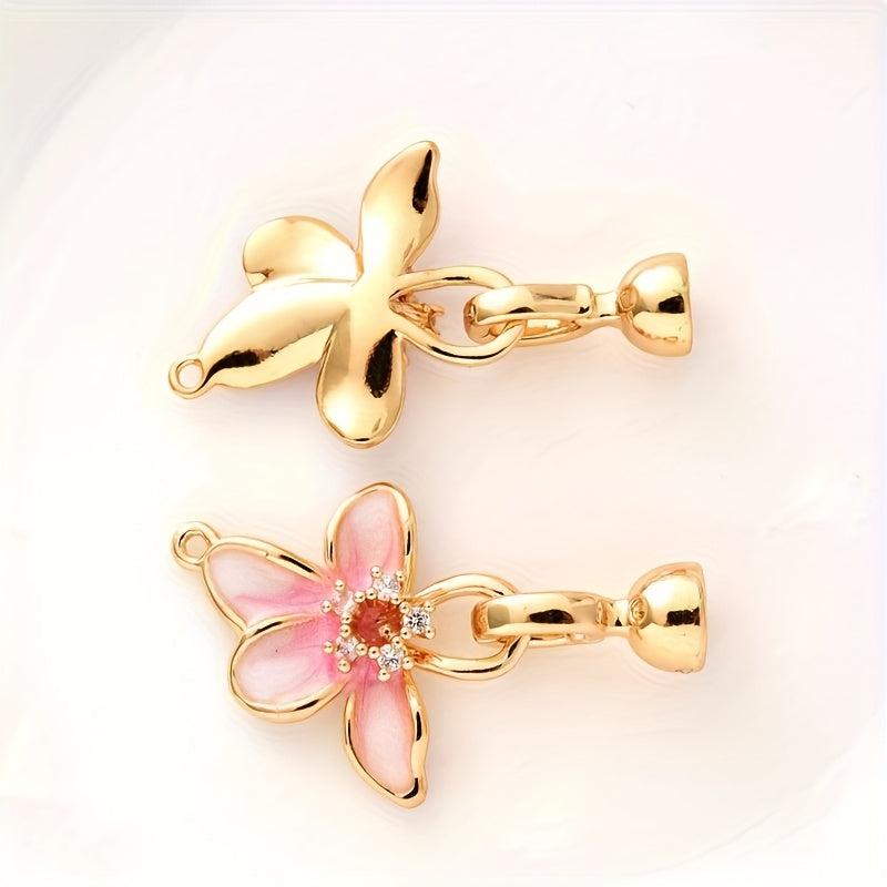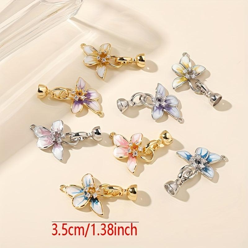 Add a touch of elegance to your jewelry piece with this DIY necklace bracelet clasp. It features a copper 18K plated flower design adorned with synthetic zirconia for a stunning look.