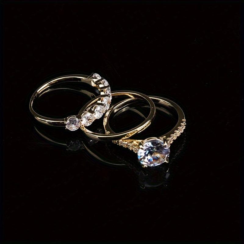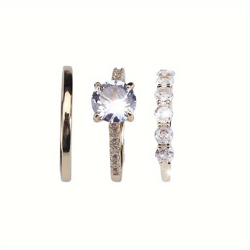 Elegant bridal ring set crafted from copper and adorned with artificial crystal inlay, perfect for weddings and versatile for daily or banquet wear in all seasons.