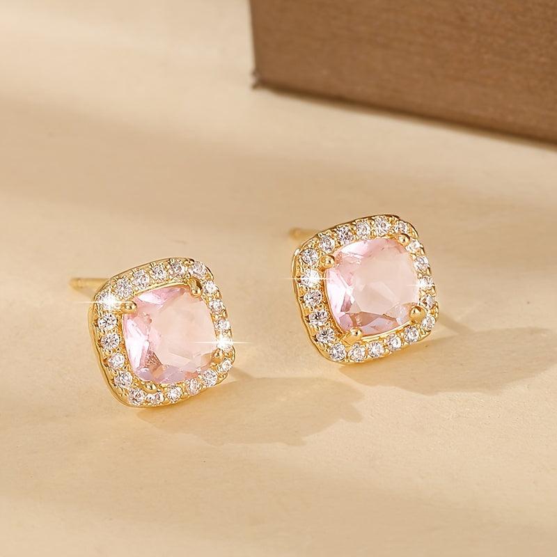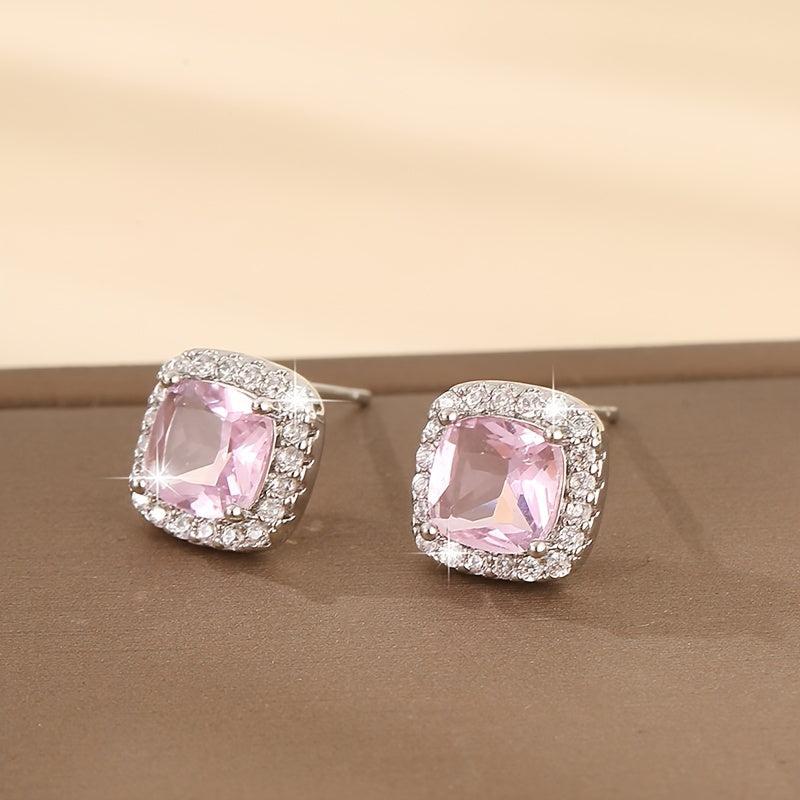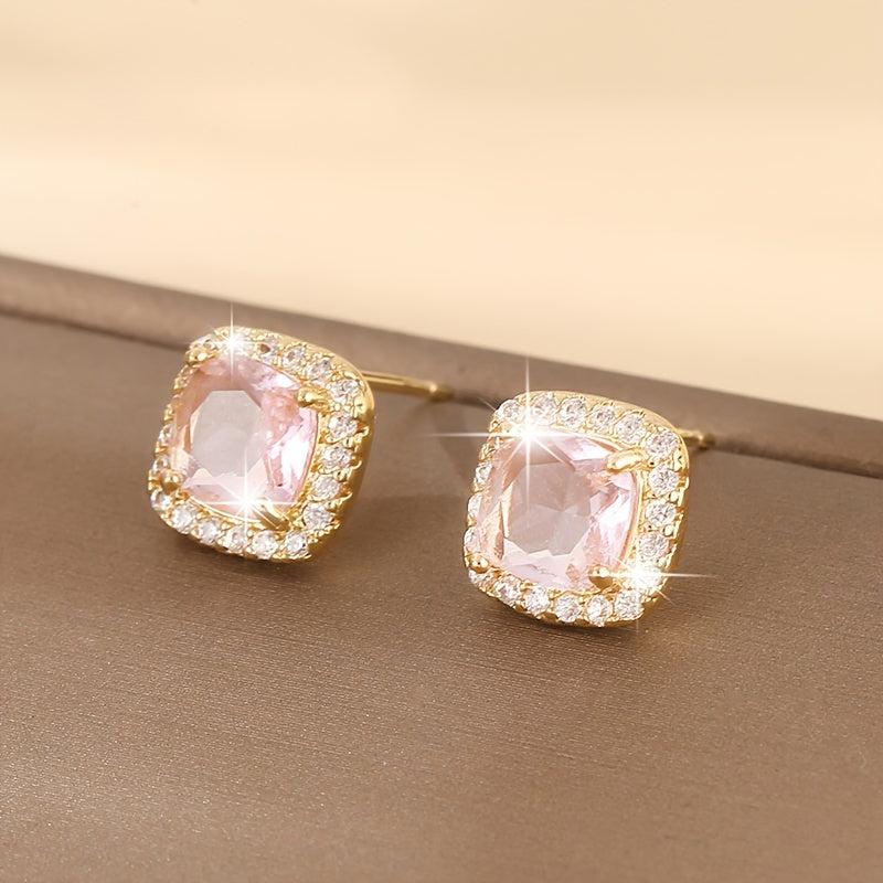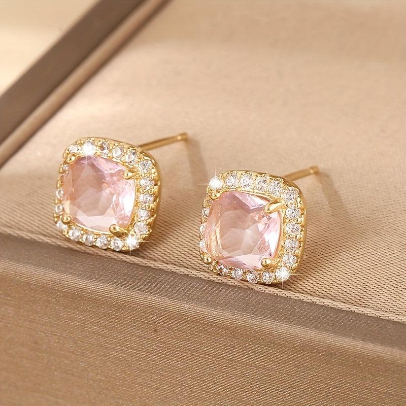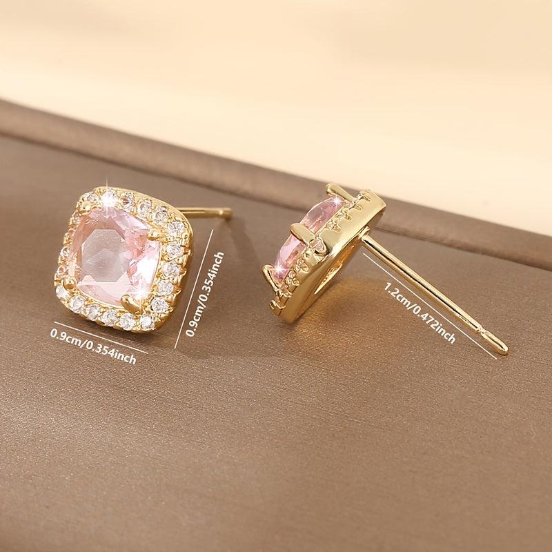 Add a touch of elegance to your look with these stylish copper inlaid synthetic zirconia pink earrings. Perfect for a date night or special occasion.