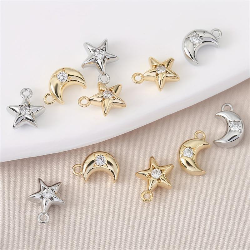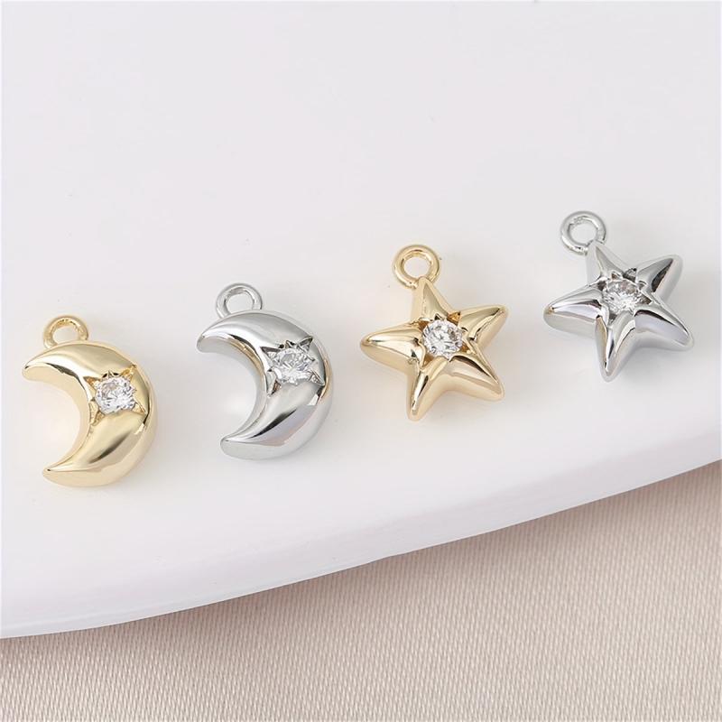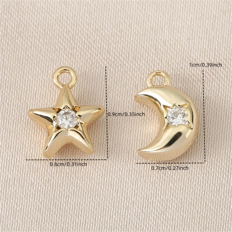 Enhance your jewelry-making projects with these copper inlaid zirconia star and moon pendants. Perfect for creating stunning earrings and necklaces.