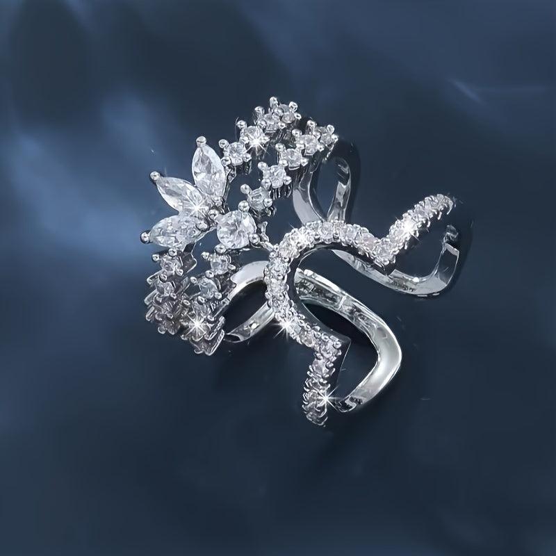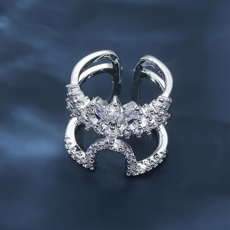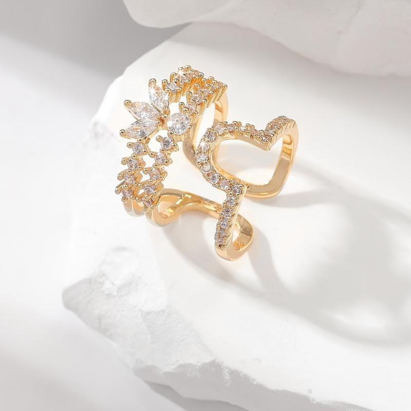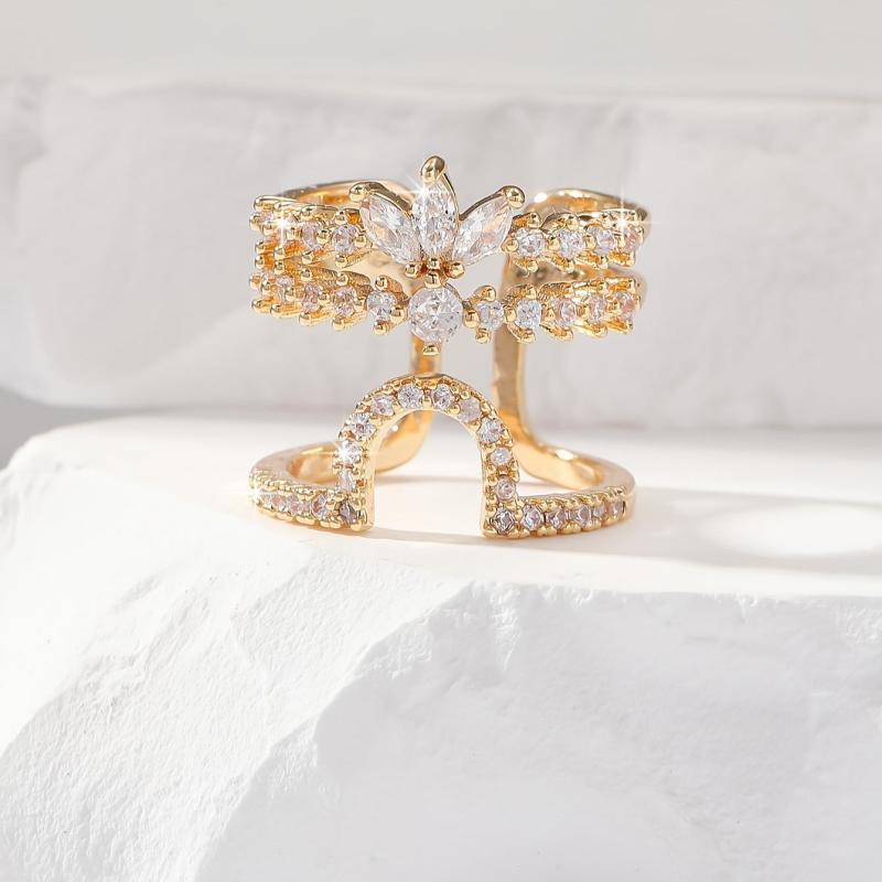 Elegant three-layered copper ring embedded with synthetic zirconia, designed for women's daily wear.