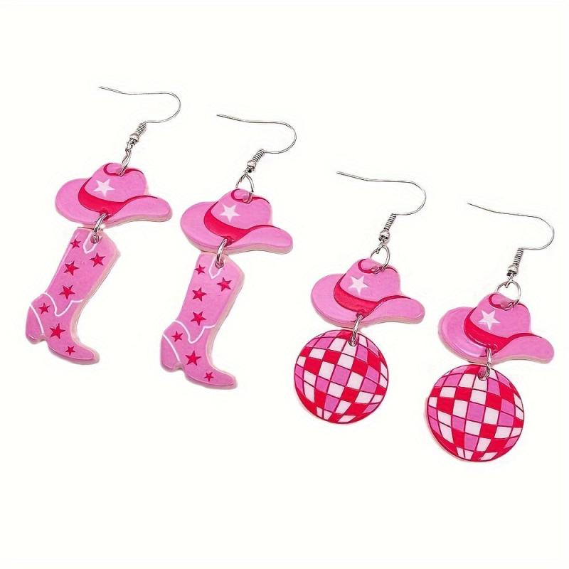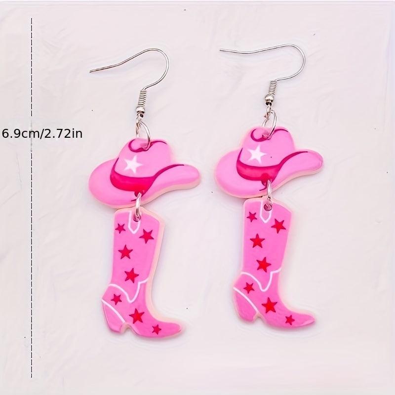 Add a touch of Western flair to your outfit with these fun pink cowboy hat and boot earrings. Lightweight and perfect for everyday wear.