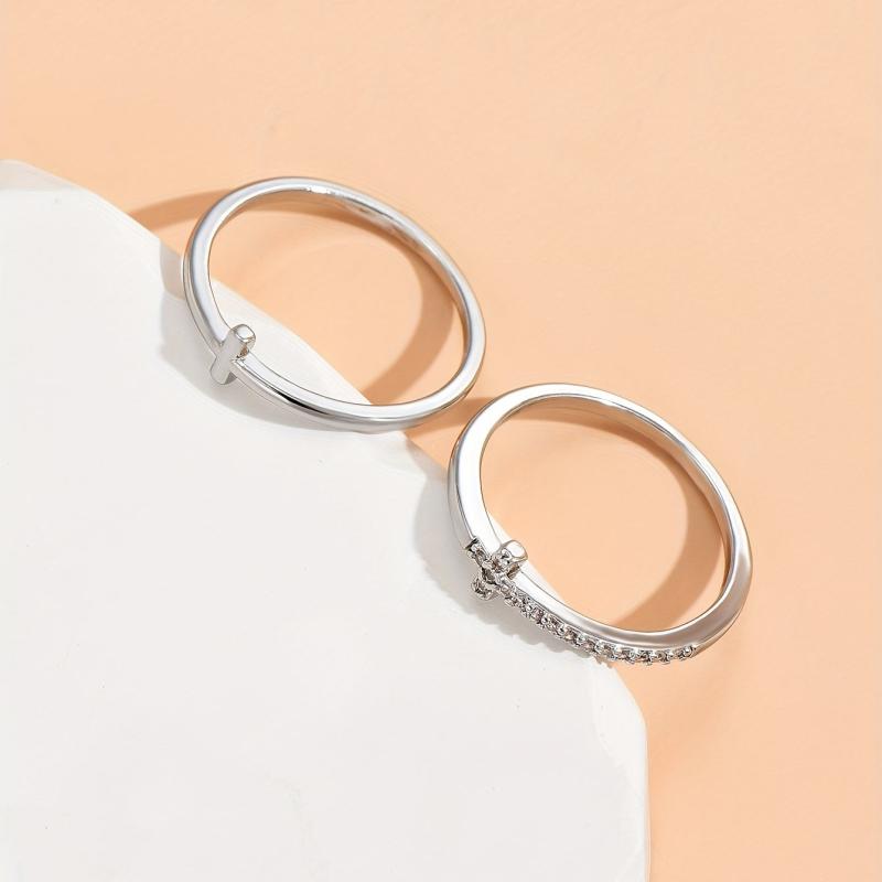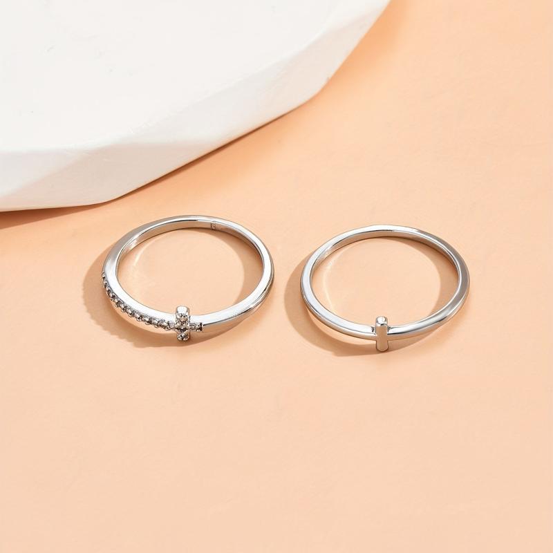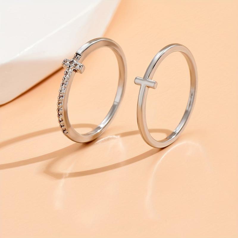 This stunning ring features a double cross design with a hollow center and inlaid zircon stones, making it a beautiful and meaningful faith-inspired piece of jewelry.