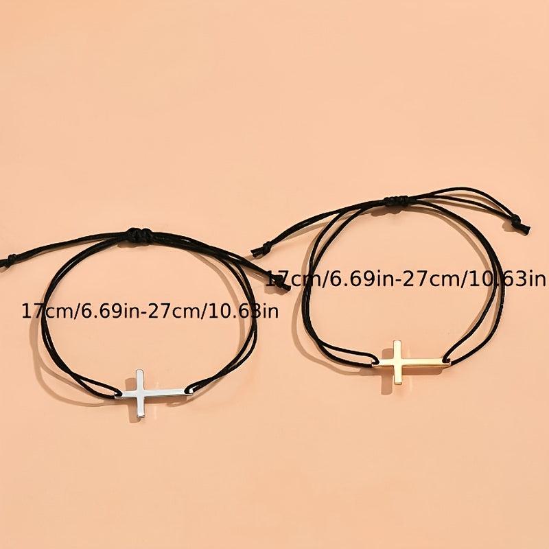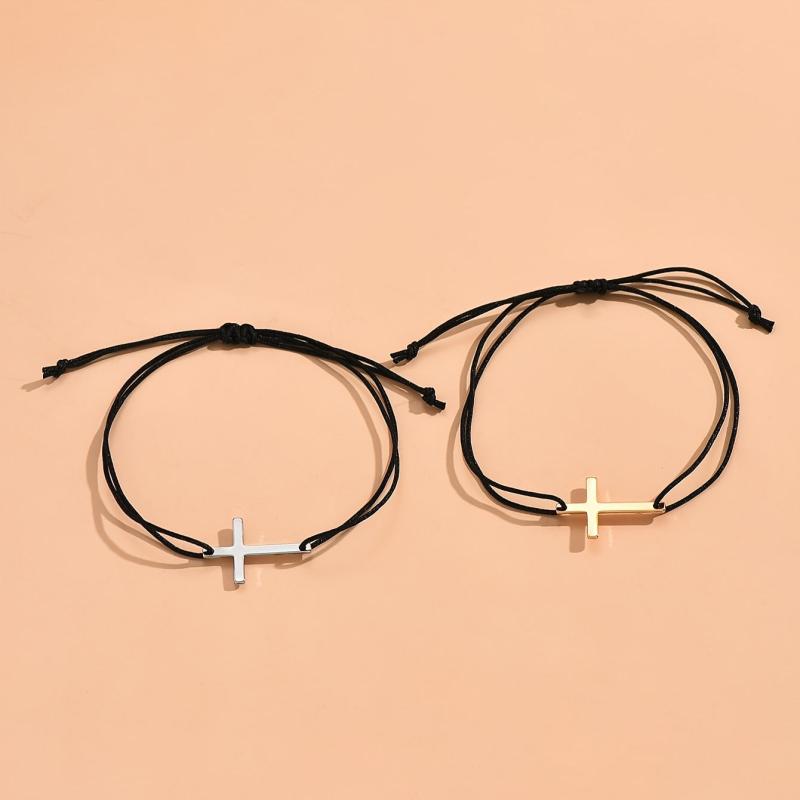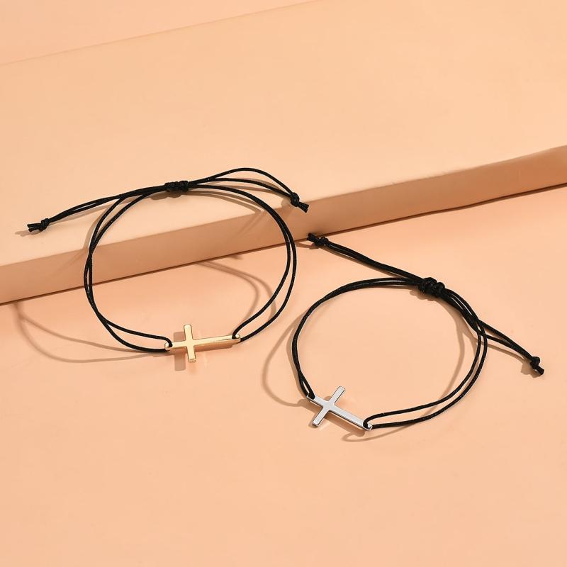 Enhance your style with this 2-piece bracelet set featuring a cross weave design. Perfect for parties or daily wear.