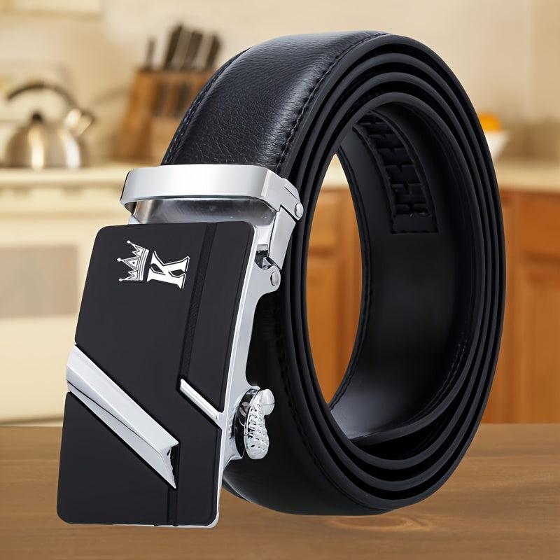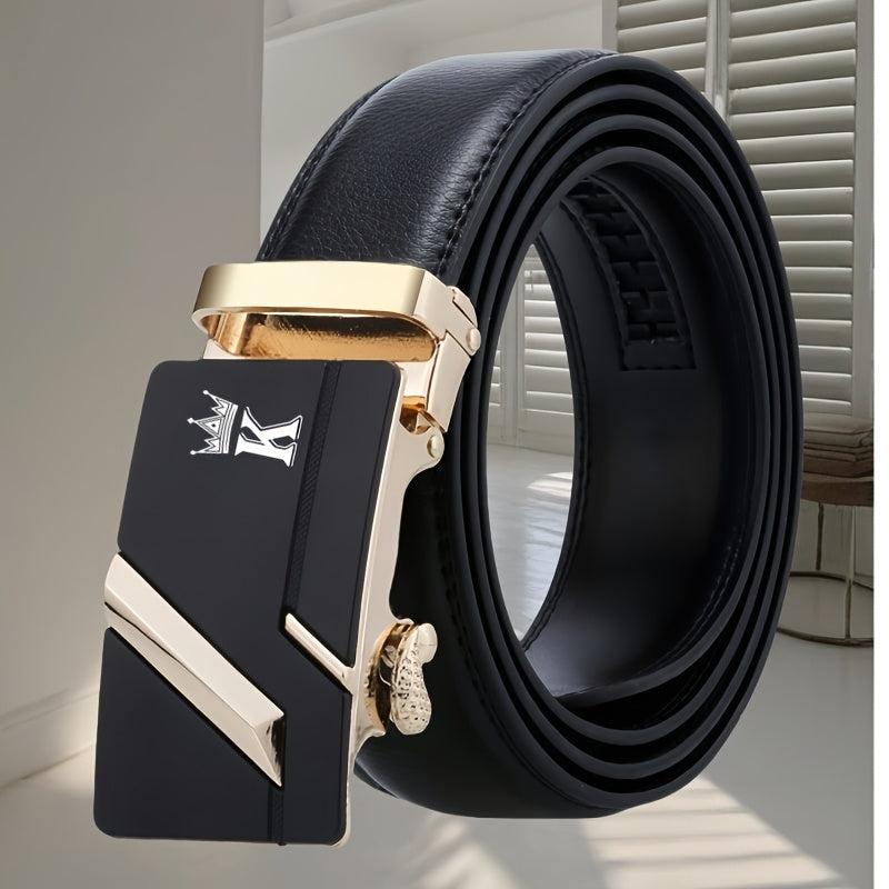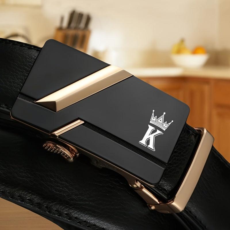 Upgrade your casual style with this Crown K pattern men's belt featuring an automatic alloy buckle. The belt is adjustable in length for a perfect fit.
