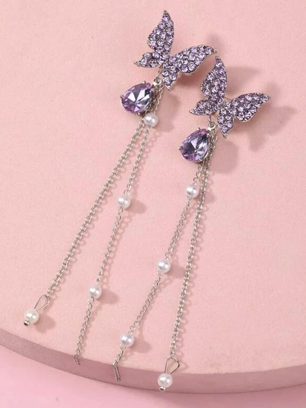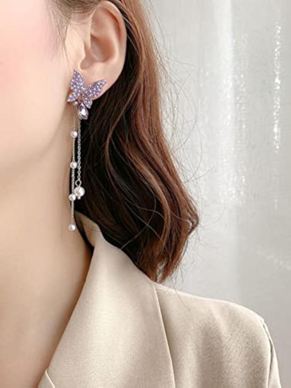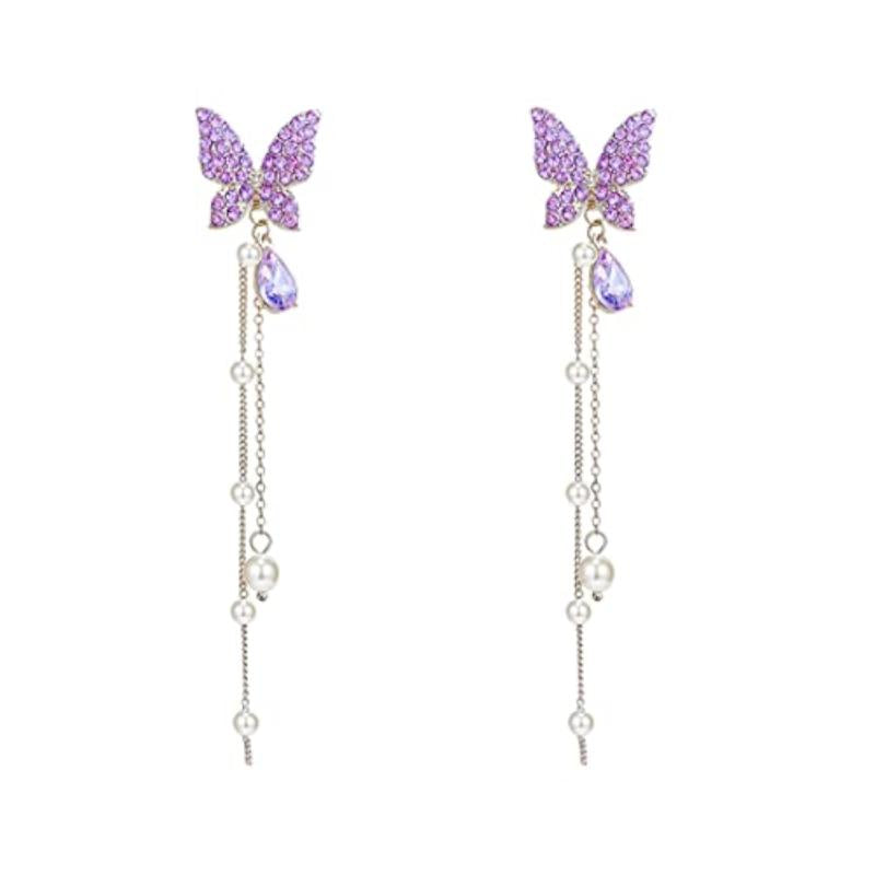Elegant and stylish crystal danglers earrings in butterfly shape with long chain, perfect for gifting on birthdays and anniversaries to your wife.