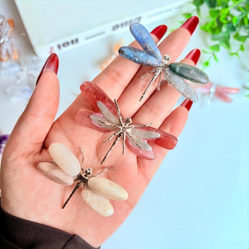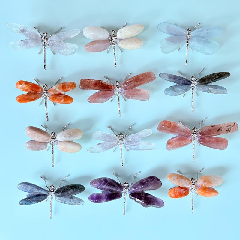 Enhance your space with this stunning Bohemian crystal dragonfly carved decor accent. Perfect for home or office table decor, meditation accessories, and a unique holiday gift for Easter or Mother's Day.