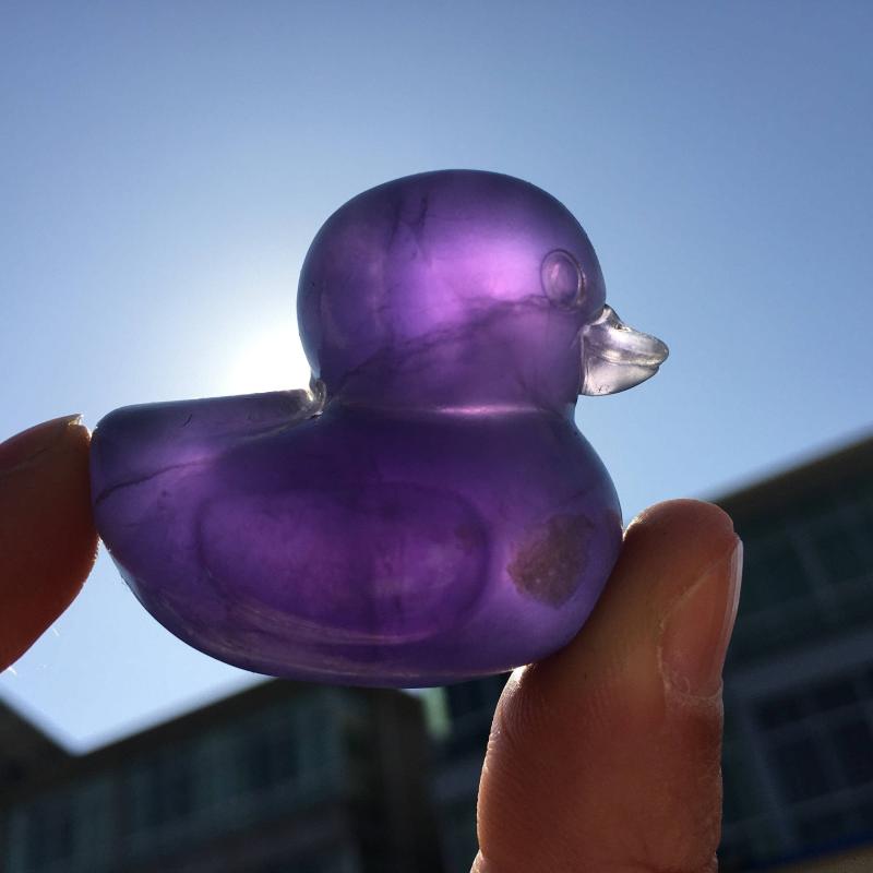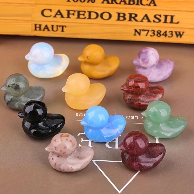 Bring positive energy into your space with this beautiful crystal duck carving. Perfect for displaying on your office desk or at home, this handmade gemstone duck adds a touch of elegance and healing vibes to any room.