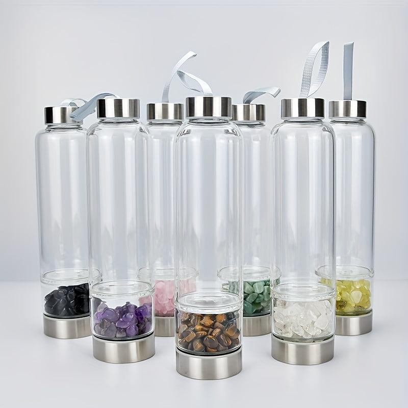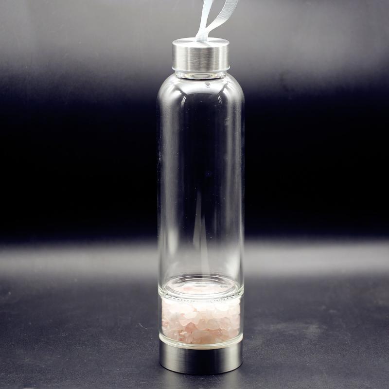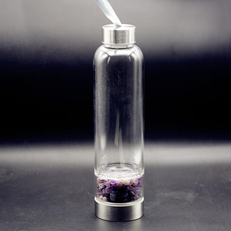 Enhance your energy with this crystal-infused bottle featuring Amethyst, Clear Quartz, and Rose Crystal.