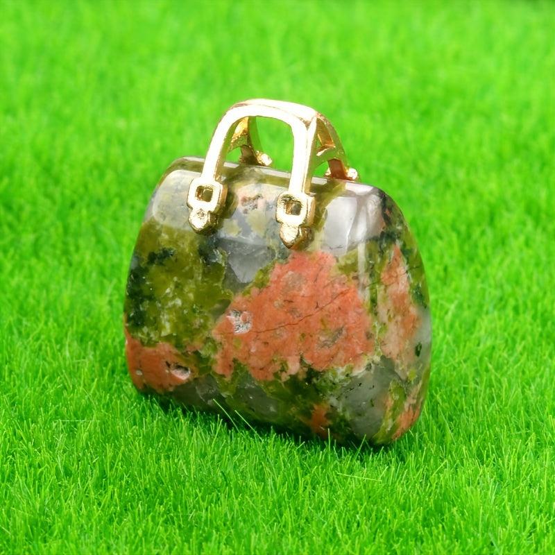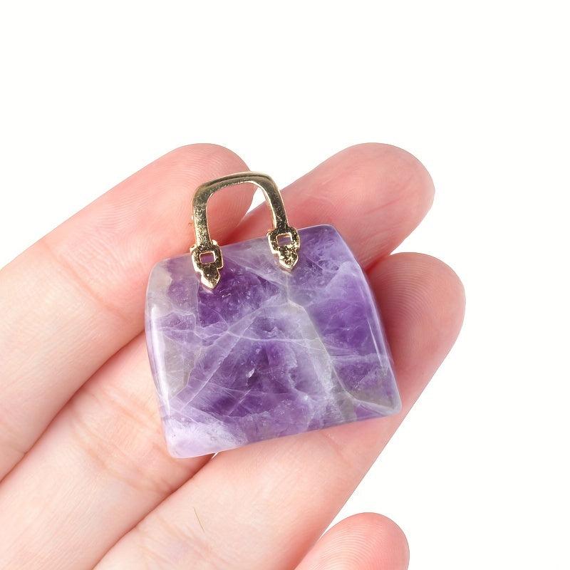 Add a touch of elegance to your handbags with these crystal pendants featuring faux gemstone charms and golden metal handles.