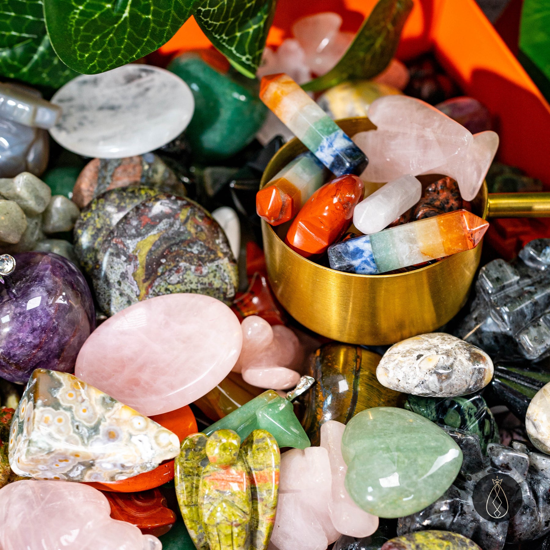 Enhance your collection with this set of fine crystal stone carvings featuring various shapes like angels, turtles, elephants, apples, owls, and more.