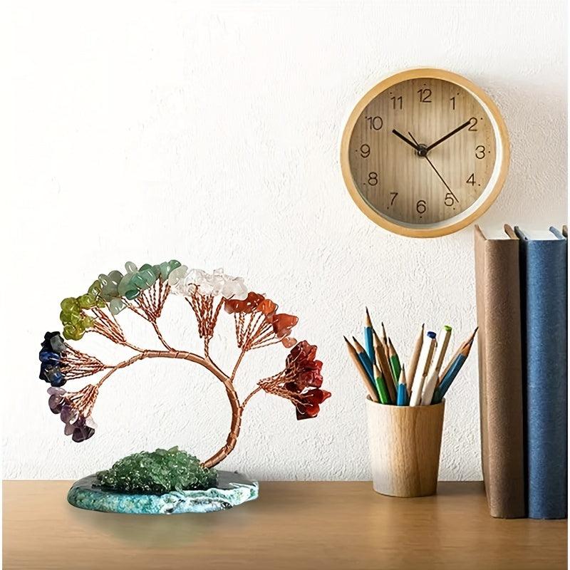 Add a touch of elegance to your home or office with this mini crystal tree ornament featuring a crushed stone base.