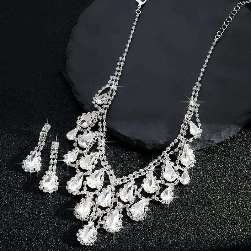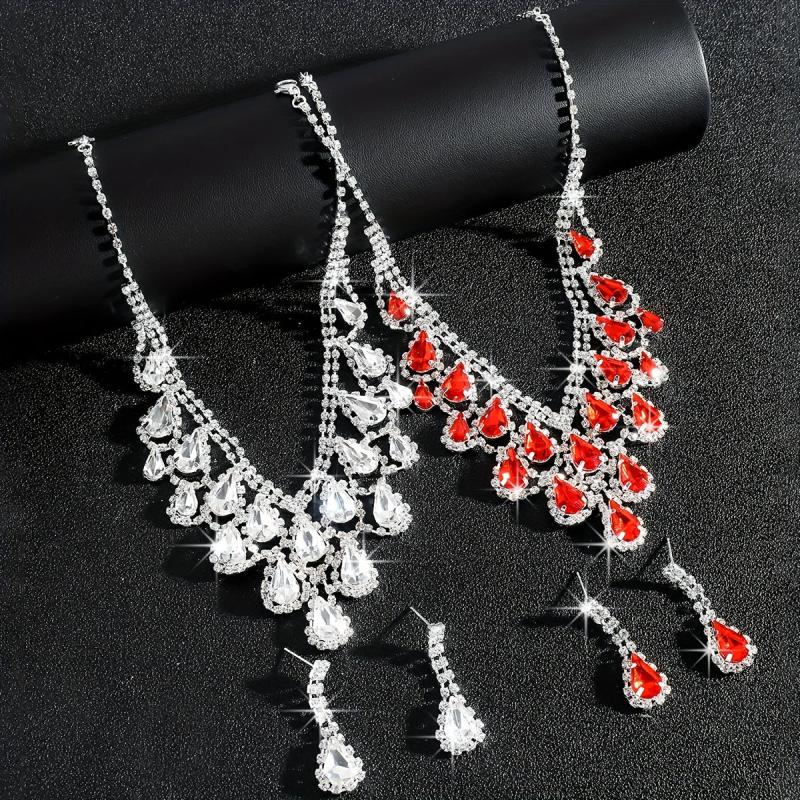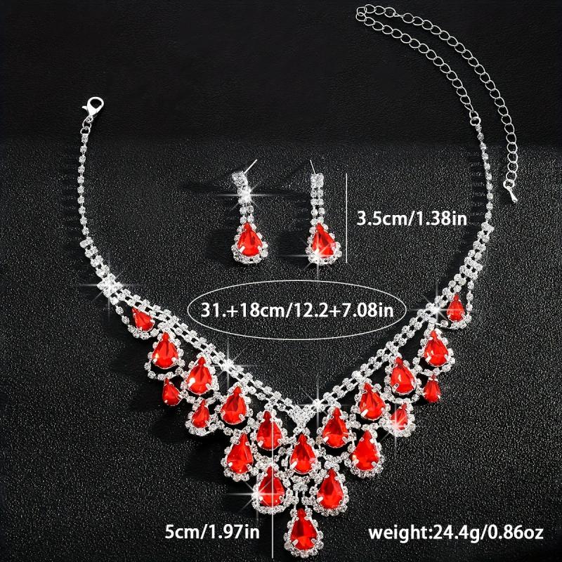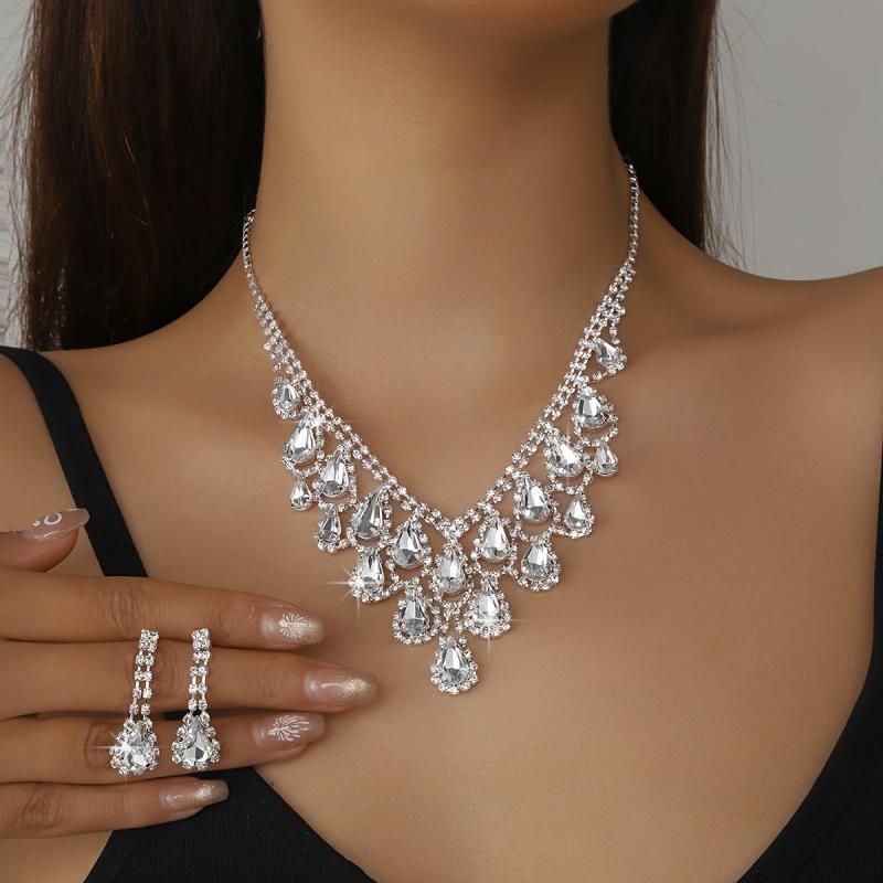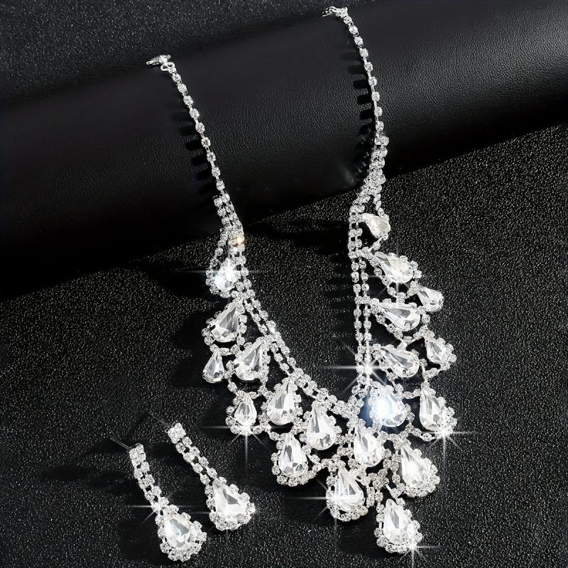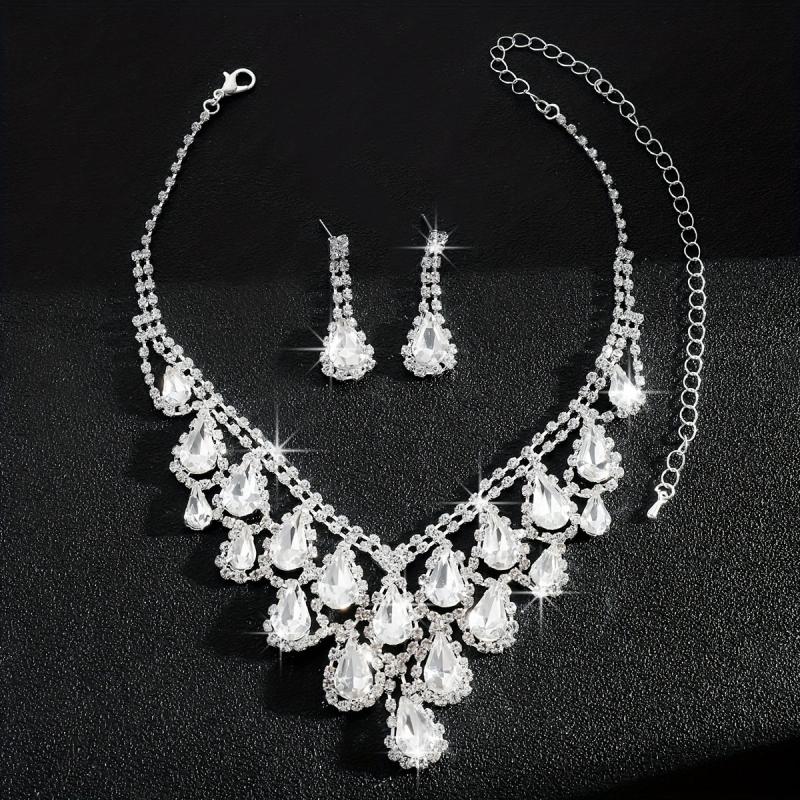 Elegant copper base jewelry set perfect for weddings and banquets. Features sparkling artificial crystal water drop design. Suitable for all seasons.
