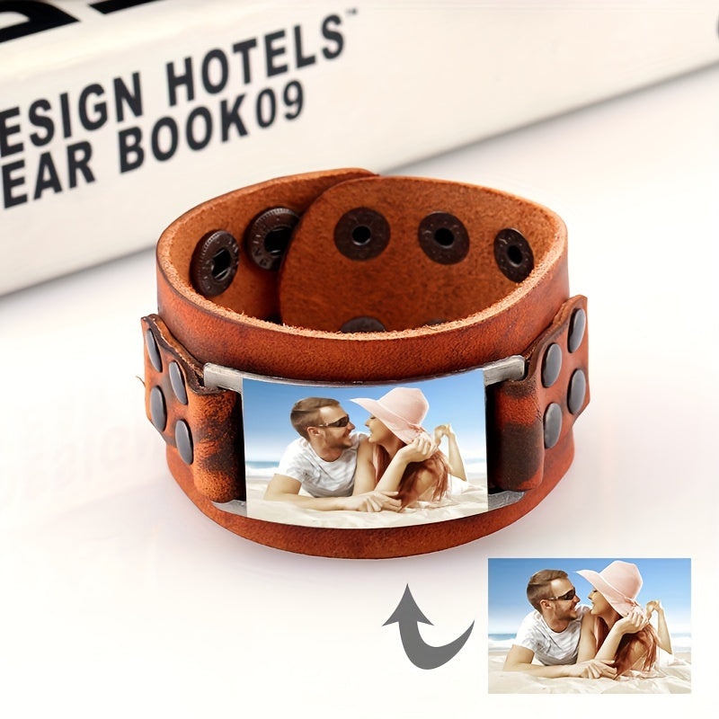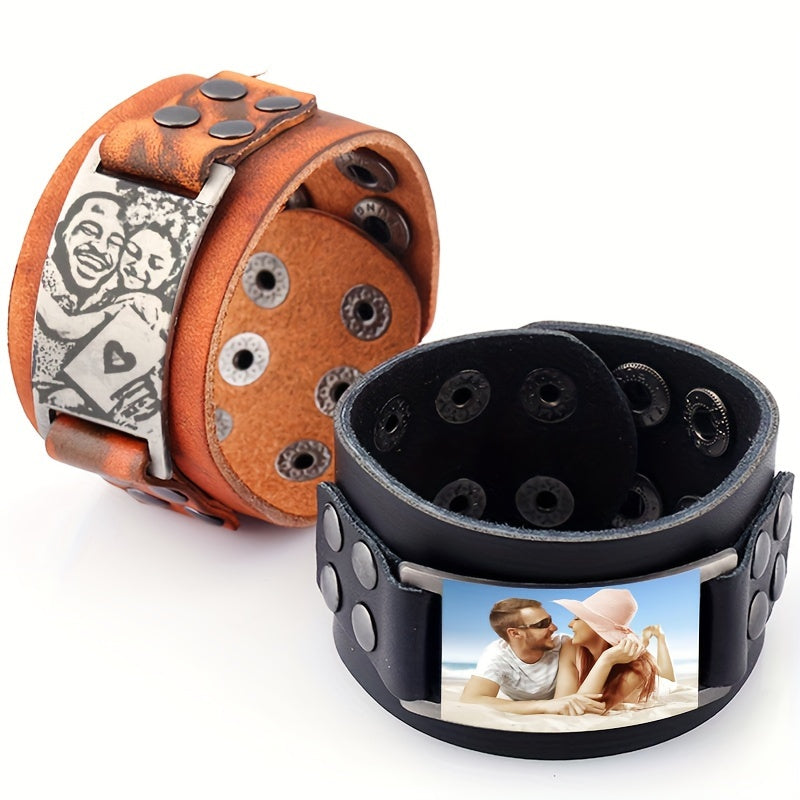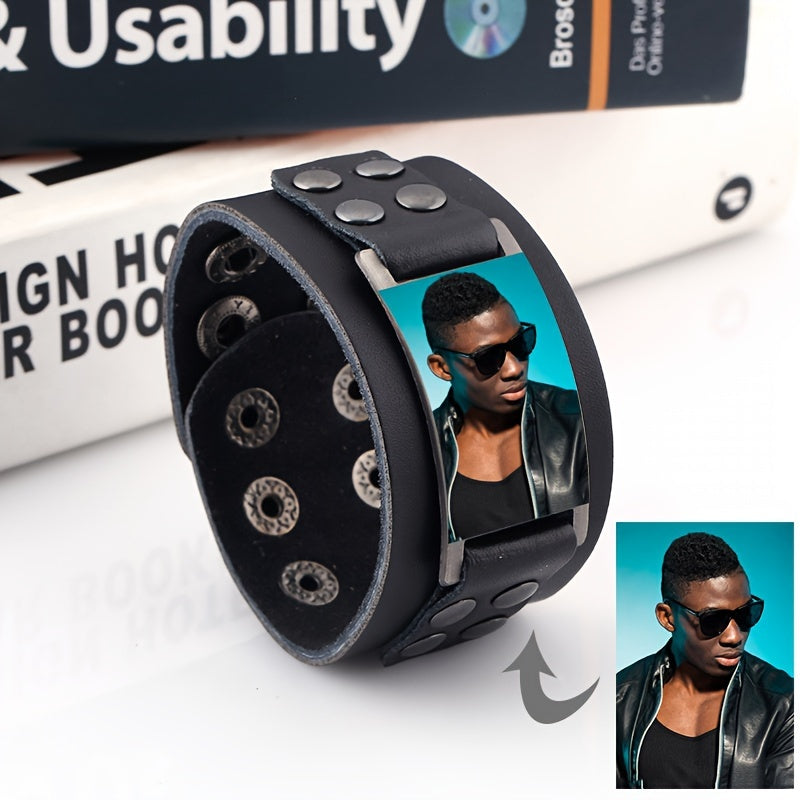 Punk style wide cuff bracelet made of genuine leather with a customizable adjustable fit, perfect for everyday wear.