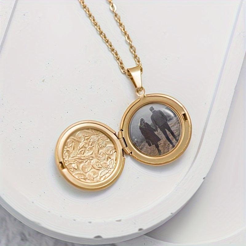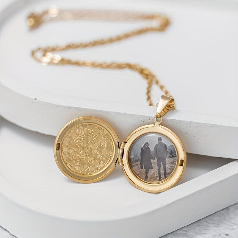 Keep your loved ones close with this personalized photo locket necklace featuring interlocking circular pendants made of durable stainless steel.