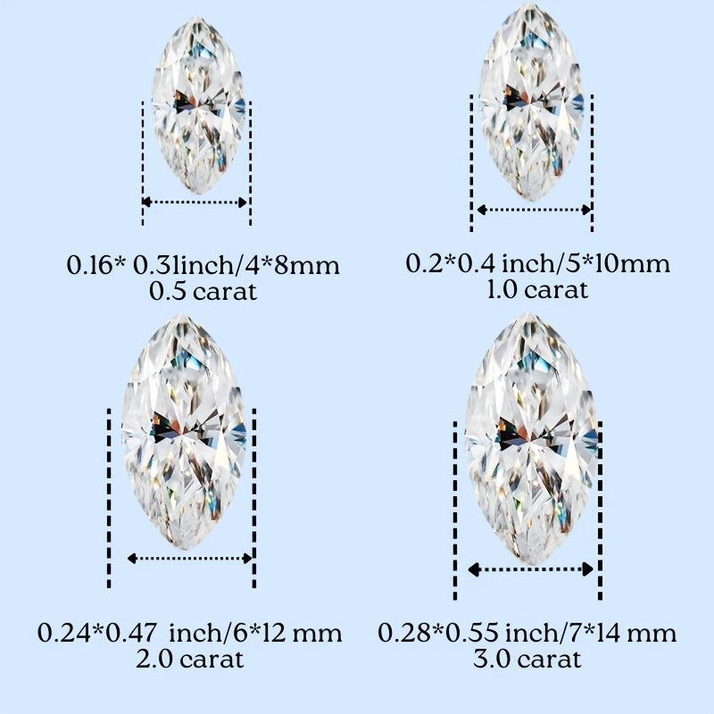 Premium quality D colorless marquise cut VVS1 clarity moissanite loose stones. Ideal for creating exquisite jewelry like engagement rings, wedding bands, earrings, and bracelets.