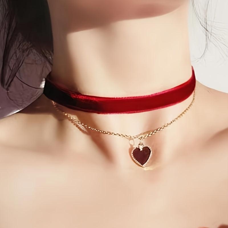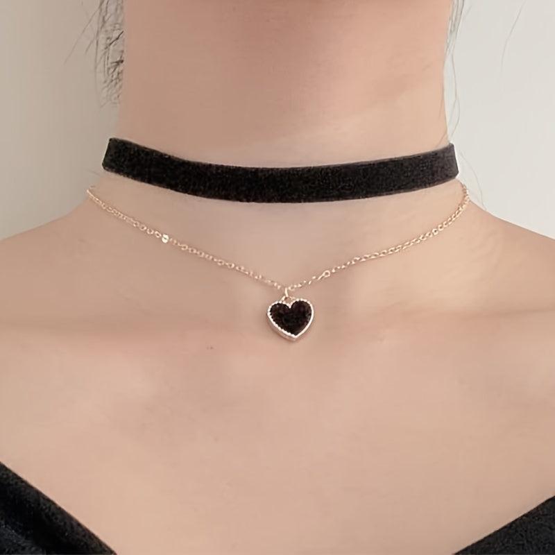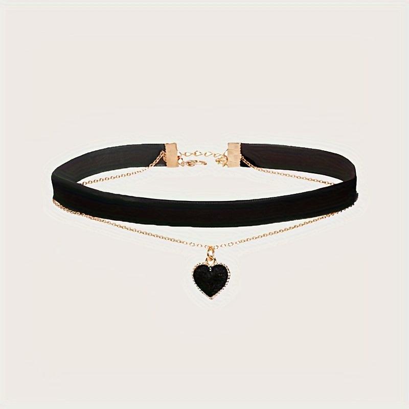 Add a touch of vintage style with this dark retro velvet choker necklace featuring a love pendant.