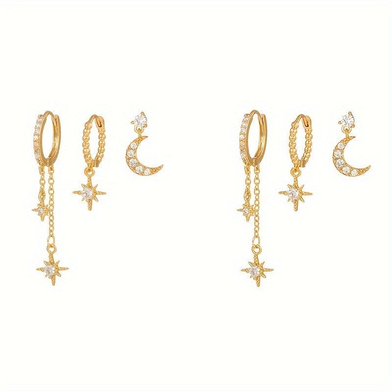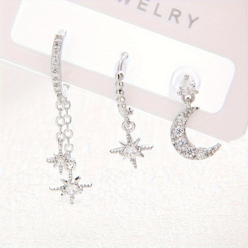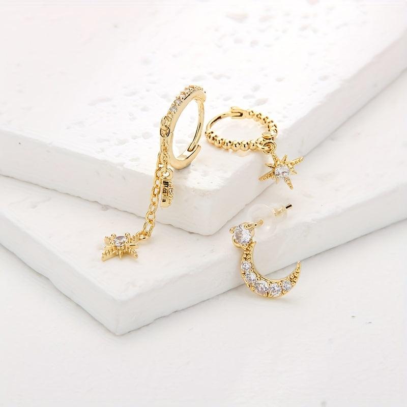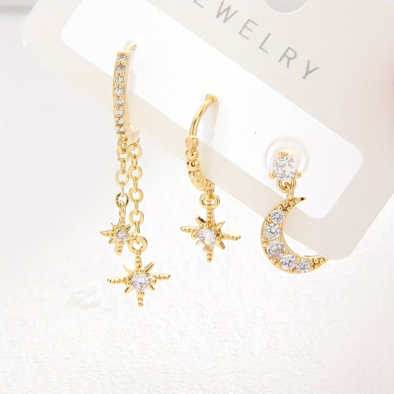 This set includes 3 delicate stud earrings: moon, star, and CZ stones. Perfect for stacking in multiple ear piercings.