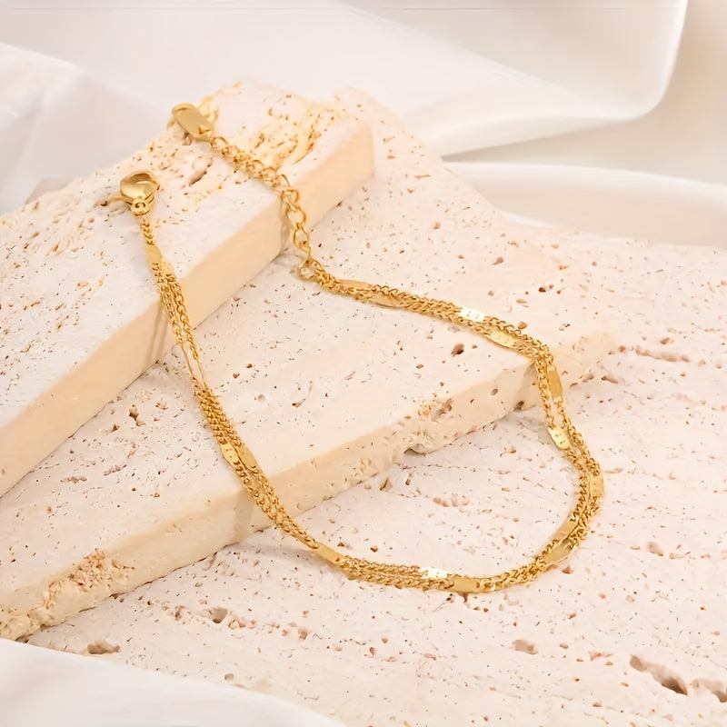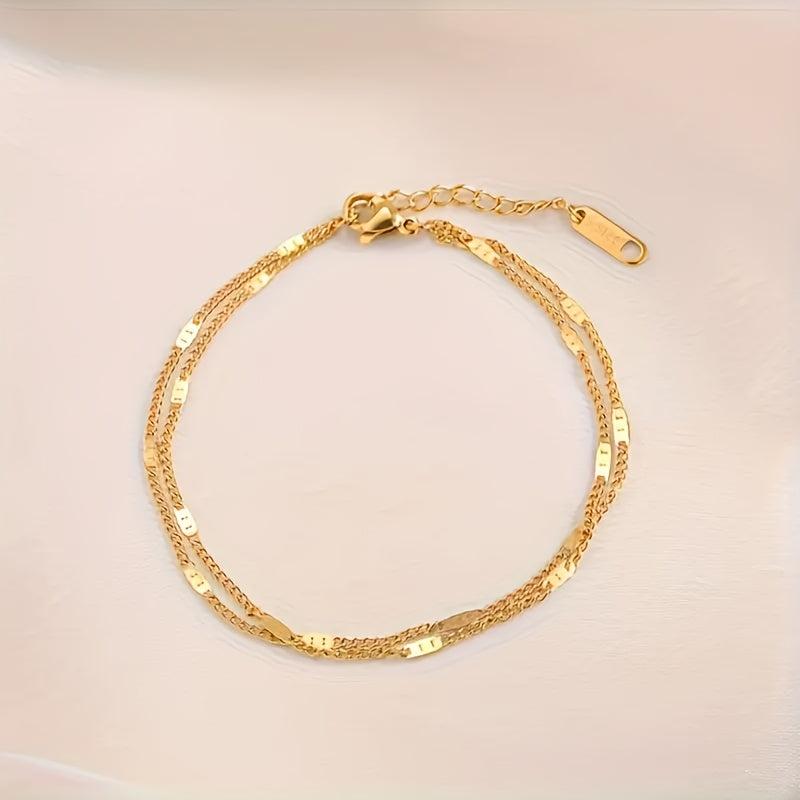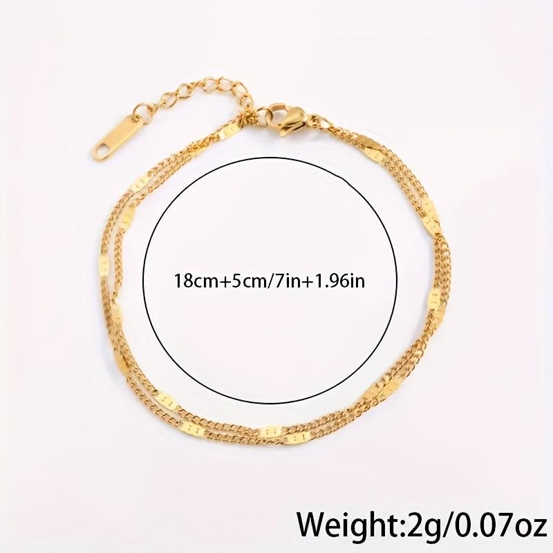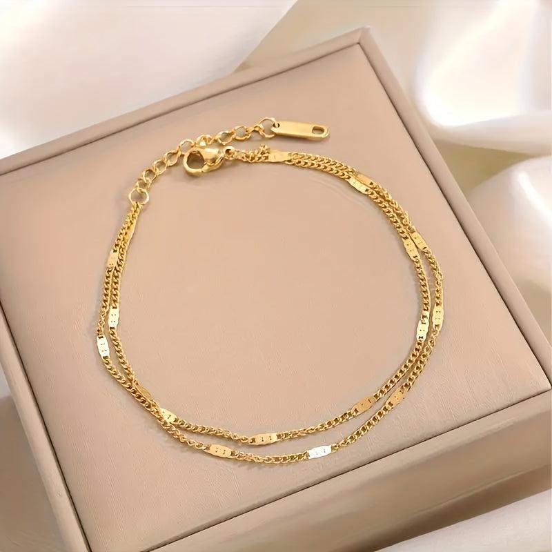 Elevate your style with this chic double layer golden chain bracelet crafted from stainless steel. It's perfect for daily wear, vacation, and parties, making it a versatile accessory. Ideal as a Mother's Day gift.