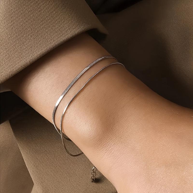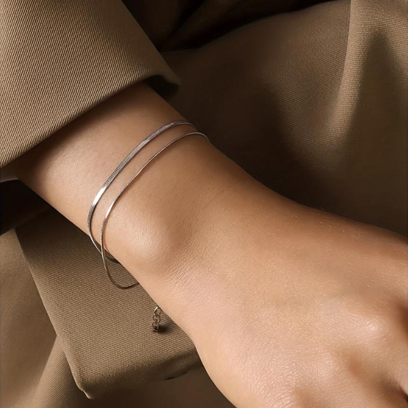 Elevate your style with this versatile double layers snake bone chain bracelet made of durable stainless steel.