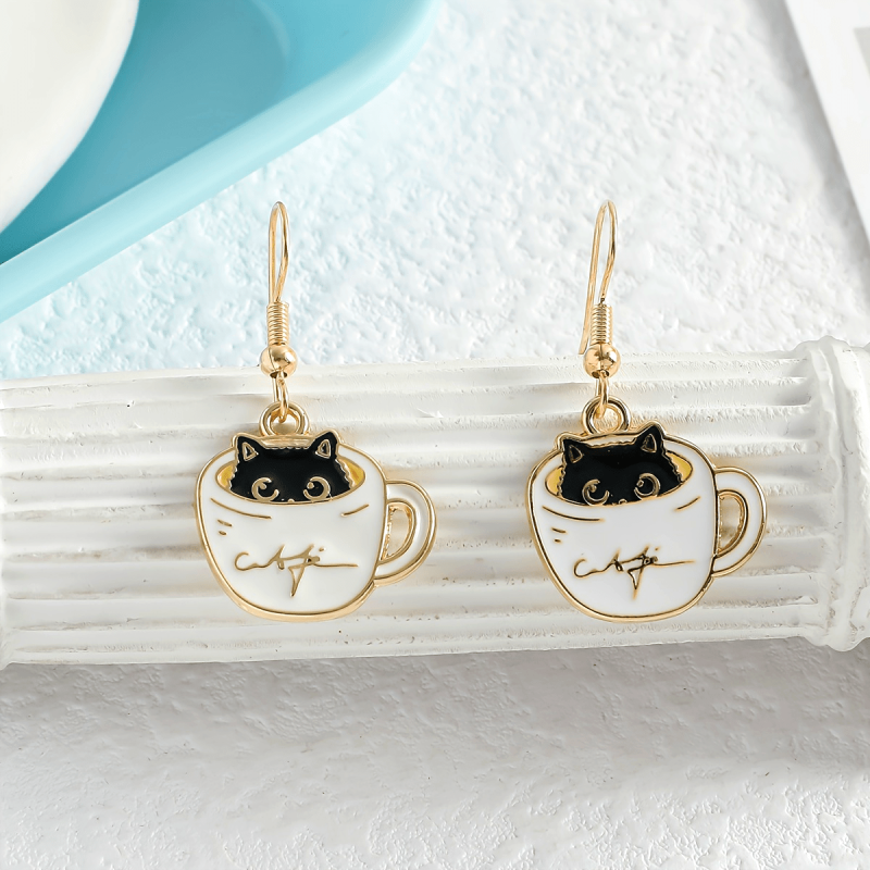 Add a touch of whimsy to your outfits with these adorable drop earrings featuring a cup and kitten design. Perfect for daily wear, parties, or casual dating, these earrings will be a charming addition to your accessory collection.