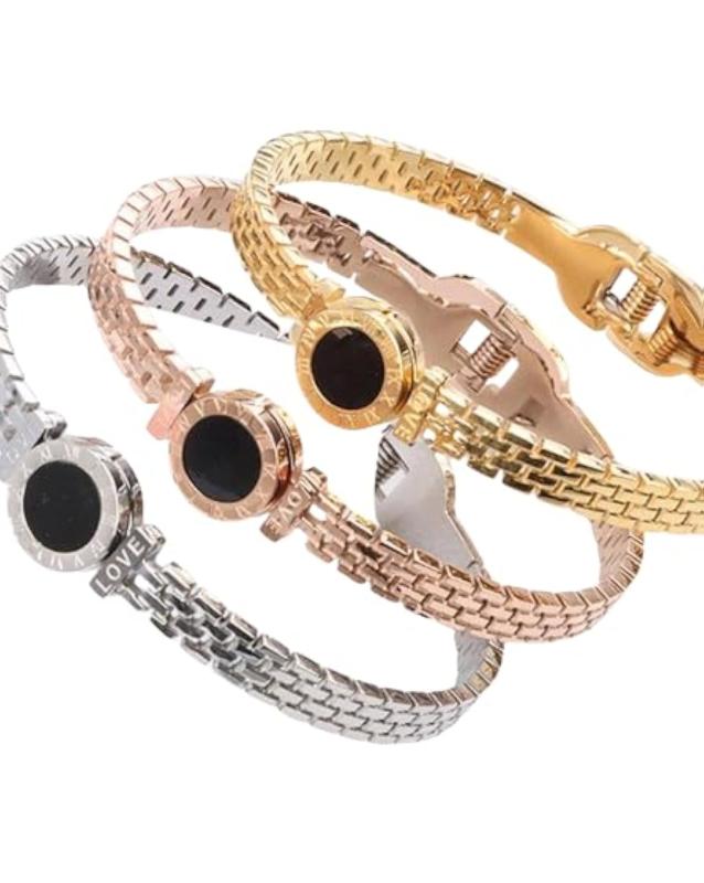 This stylish bracelet set includes 3 bangles for women. Each bangle is anti-tarnish, adjustable, and perfect for accessorizing any outfit.