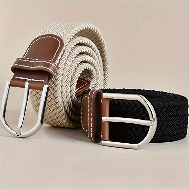 This stylish elastic canvas belt features a durable pin buckle design, perfect for jeans and casual attire.