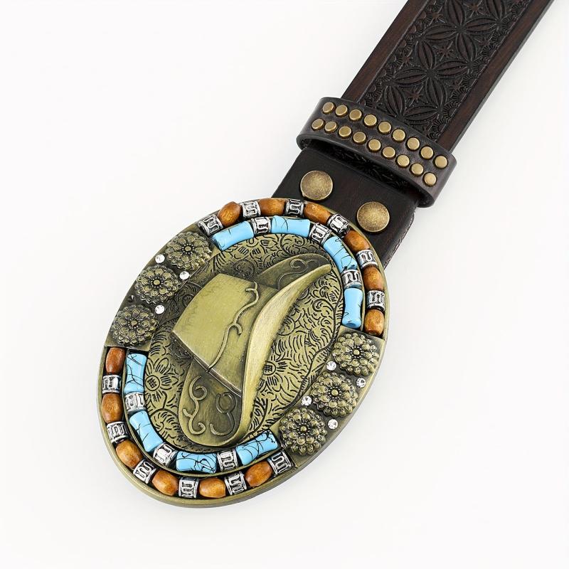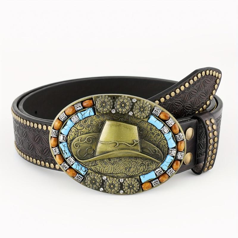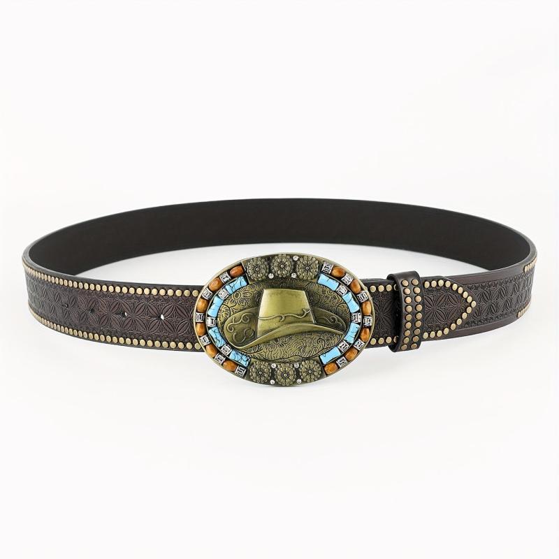 Stay stylish with this casual vintage inspired belt featuring embossed coffee PU leather and a Western alloy buckle. Perfect for everyday wear.