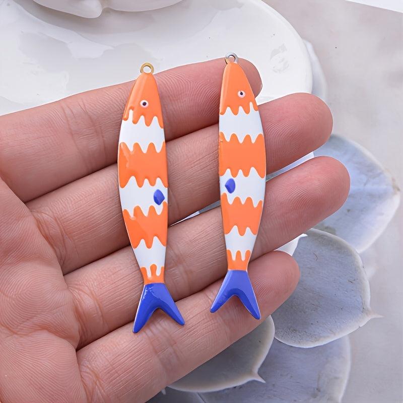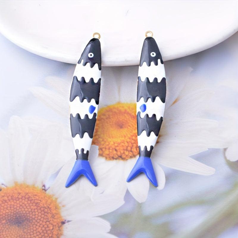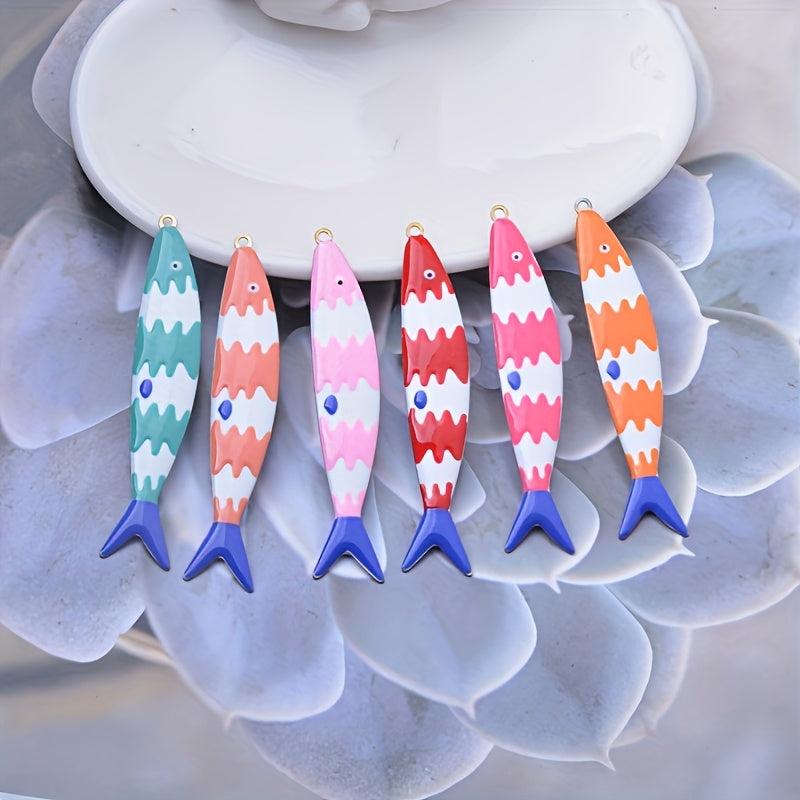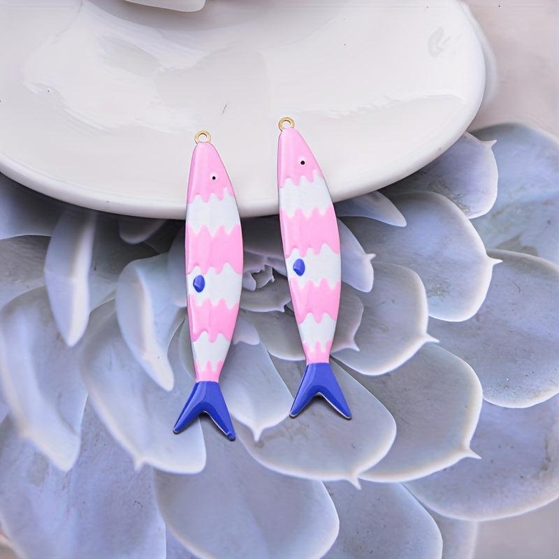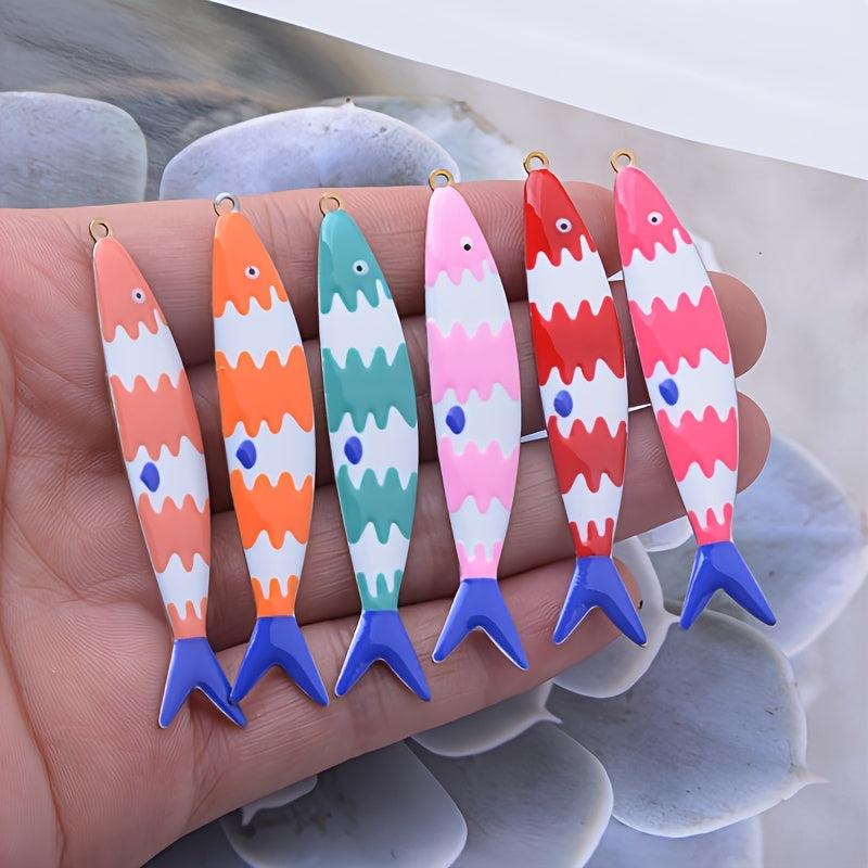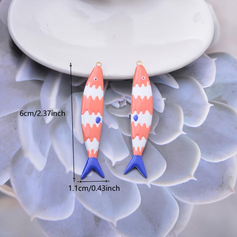 These enamel fish charms are perfect for creating your own unique jewelry pieces. Made of copper, these pendants are ideal for necklaces and earrings. Add a touch of aquatic charm to your designs with these fish charms.
