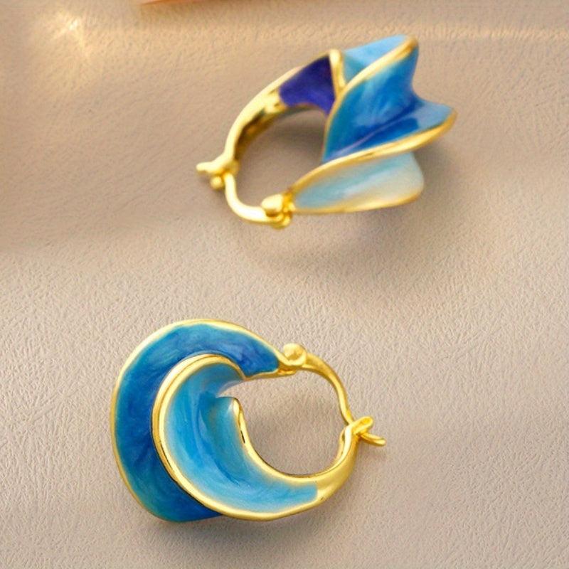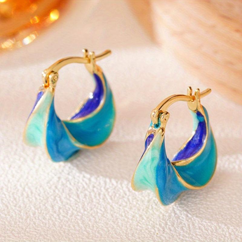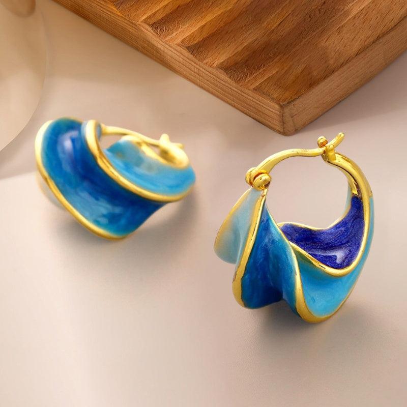 Add a touch of sophisticated style to your jewelry collection with these vintage enamel glaze hoop earrings featuring a spiral pattern.