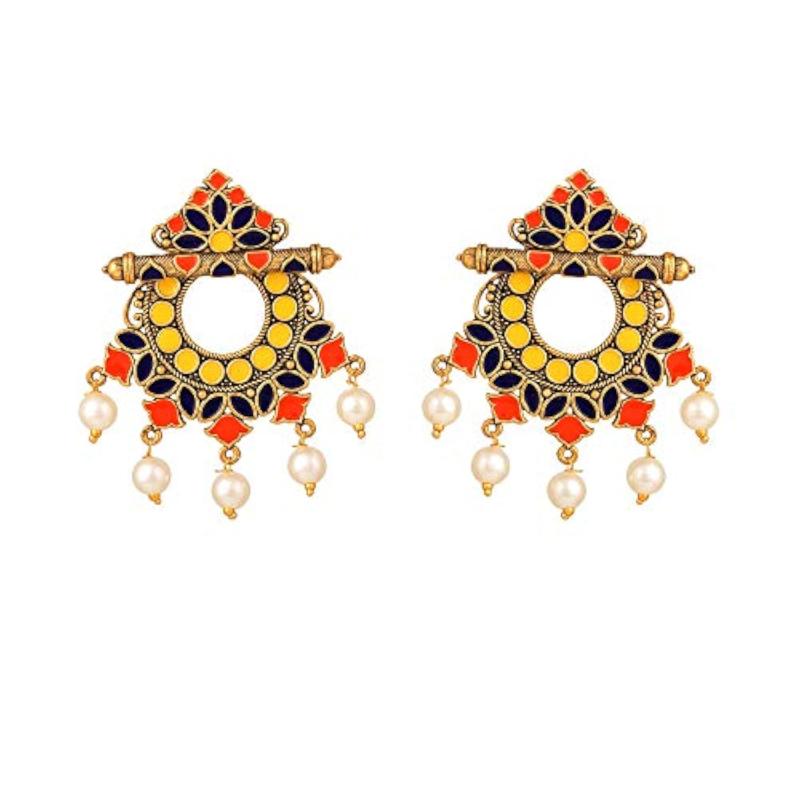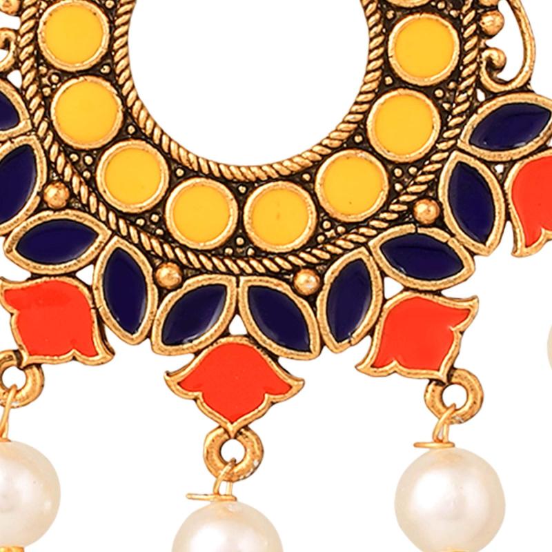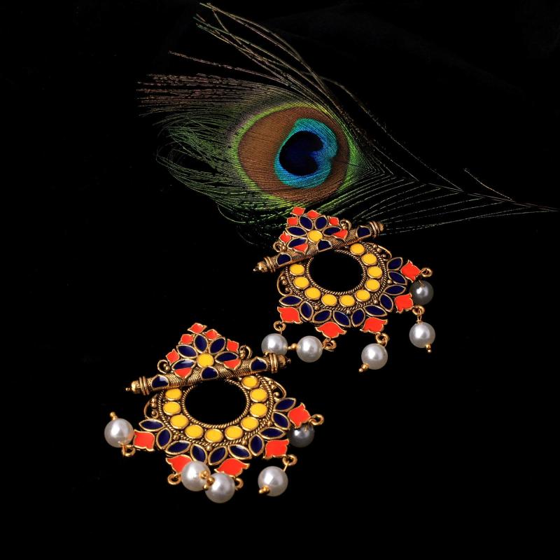 Elegant and vibrant plated Chand Bali earrings with beautiful enamelling.