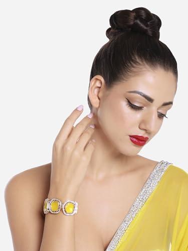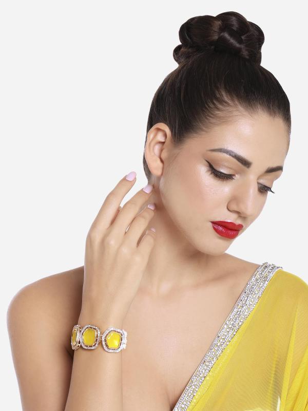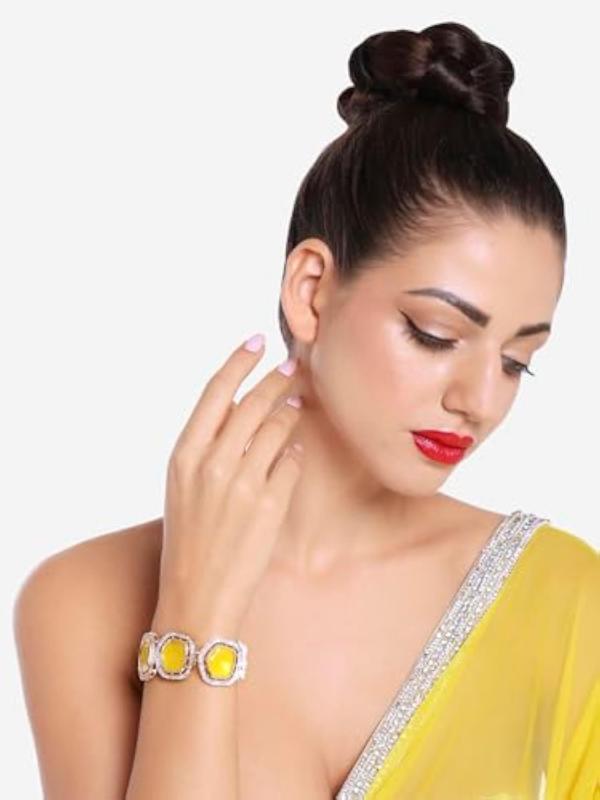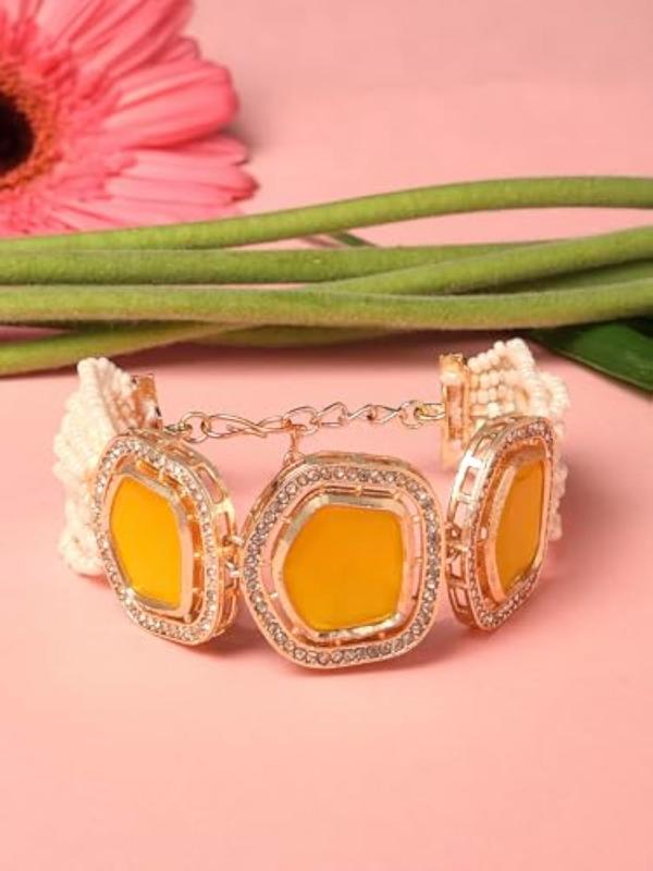 Enhance your ethnic look with this multistrand bracelet featuring artificial stones and beads. Perfect for women who love unique jewelry pieces.
