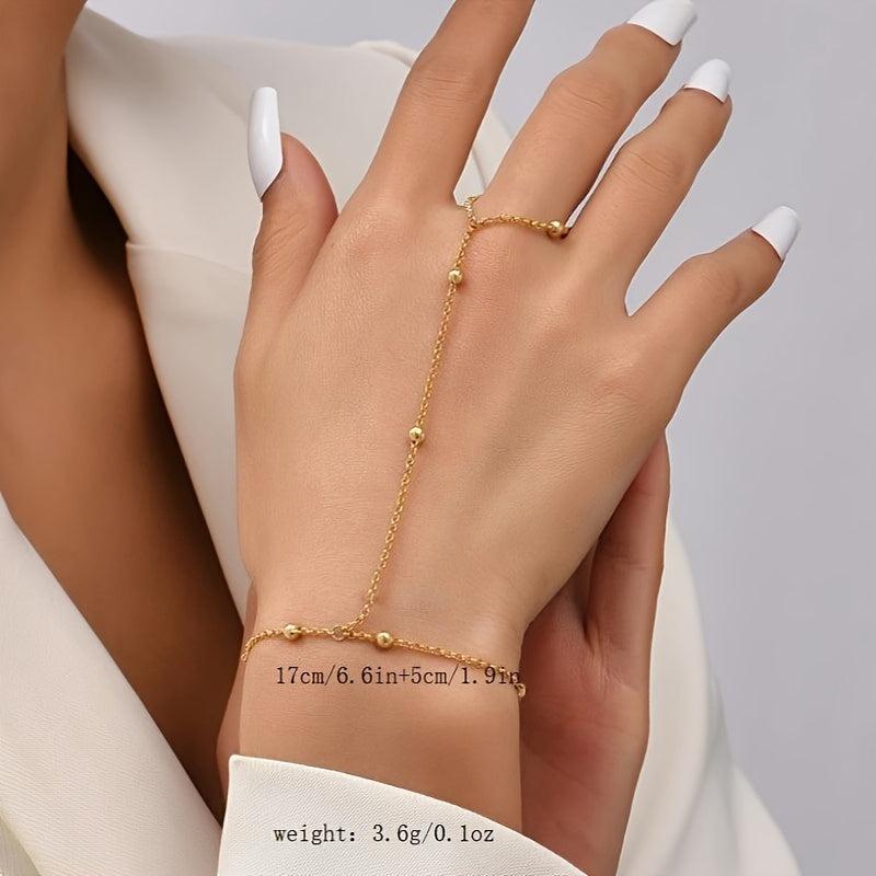 Add a touch of ethnic elegance with this copper bead finger bracelet. Perfect for the beach or any casual occasion, this piece will enhance your hand ornamentation.