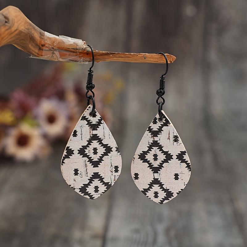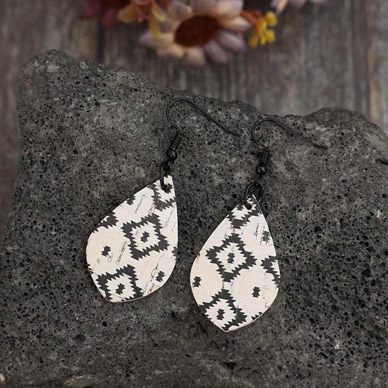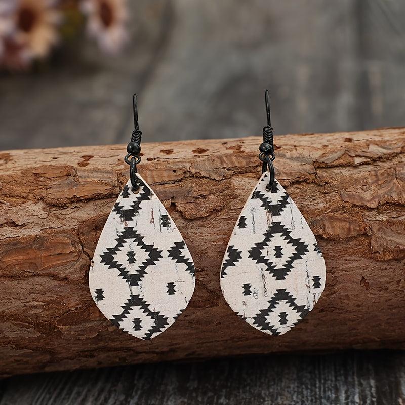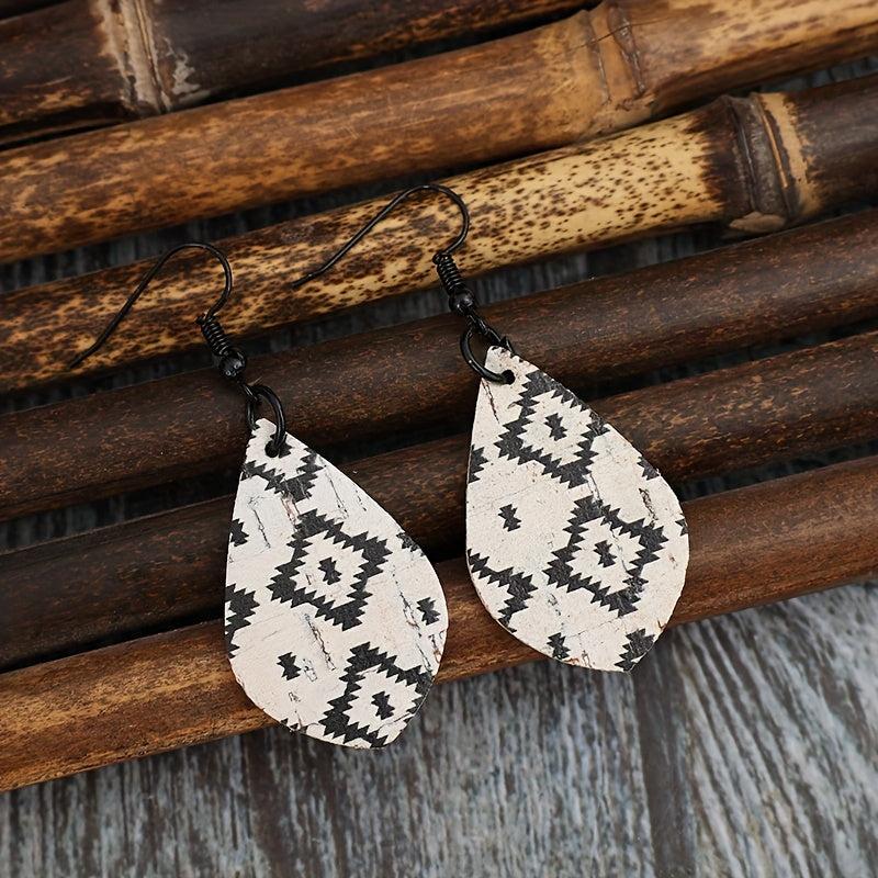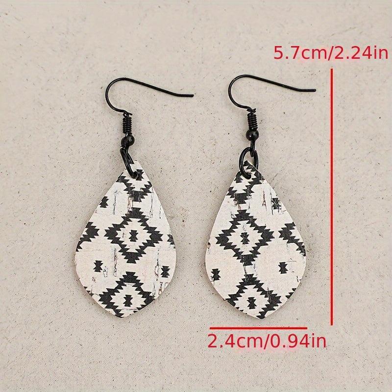 Complete your stylish look with these vibrant Ethnic Western Style Geometric Tote Pattern PU Leather Earrings.